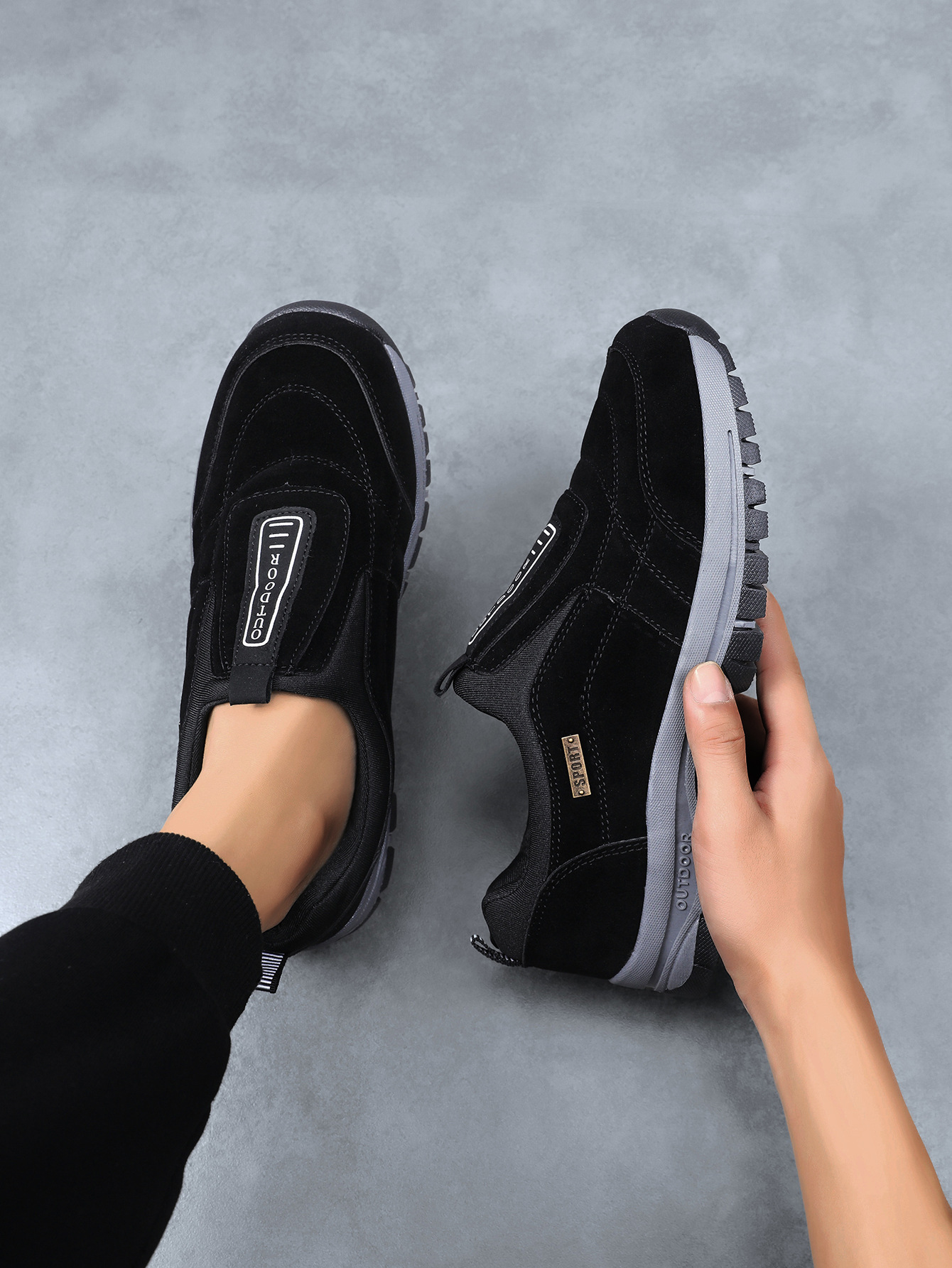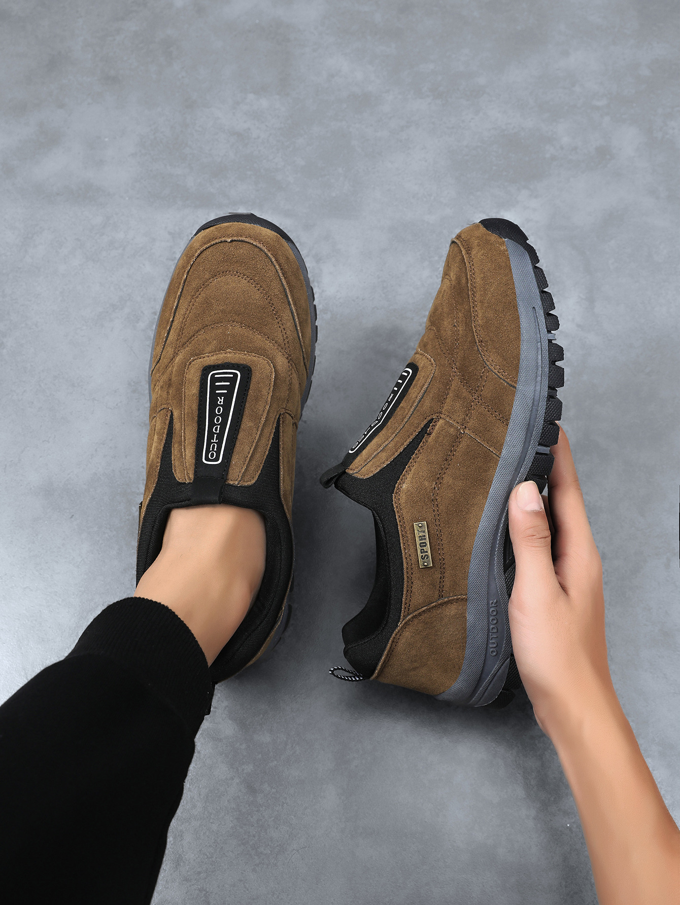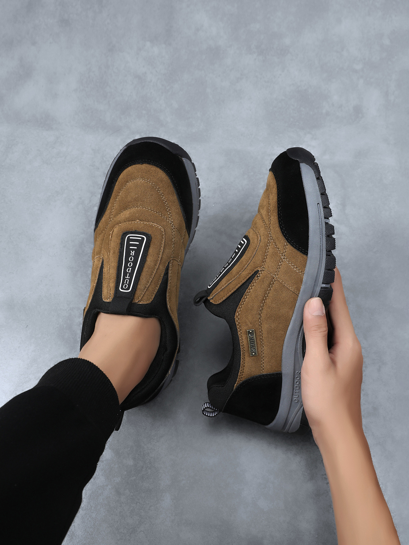 노인 워킹 신발 2025 새로운 야외 캐주얼 운동화 슬립 온 아빠 신발 남성 플러스 사이즈 등산 신발