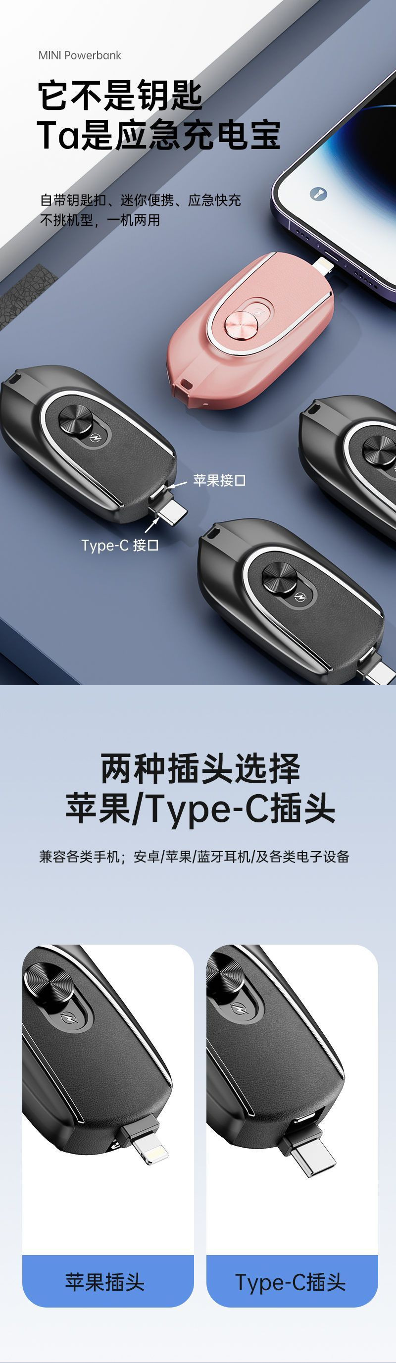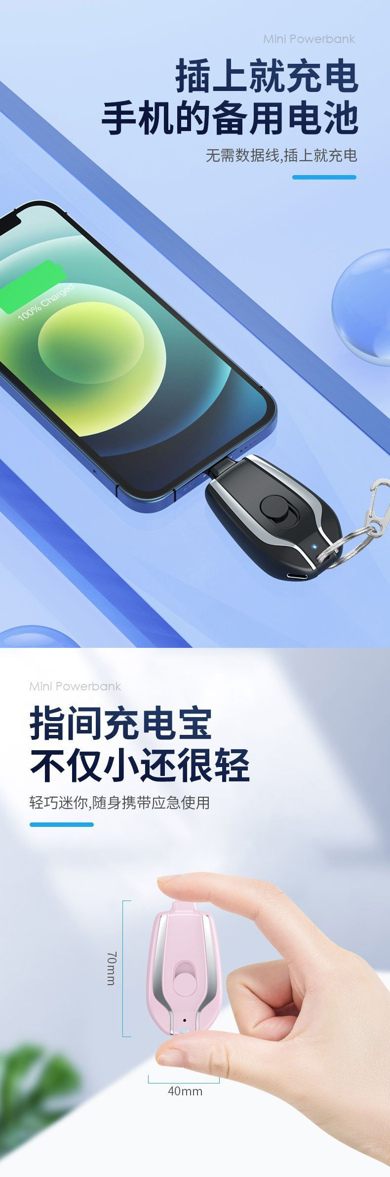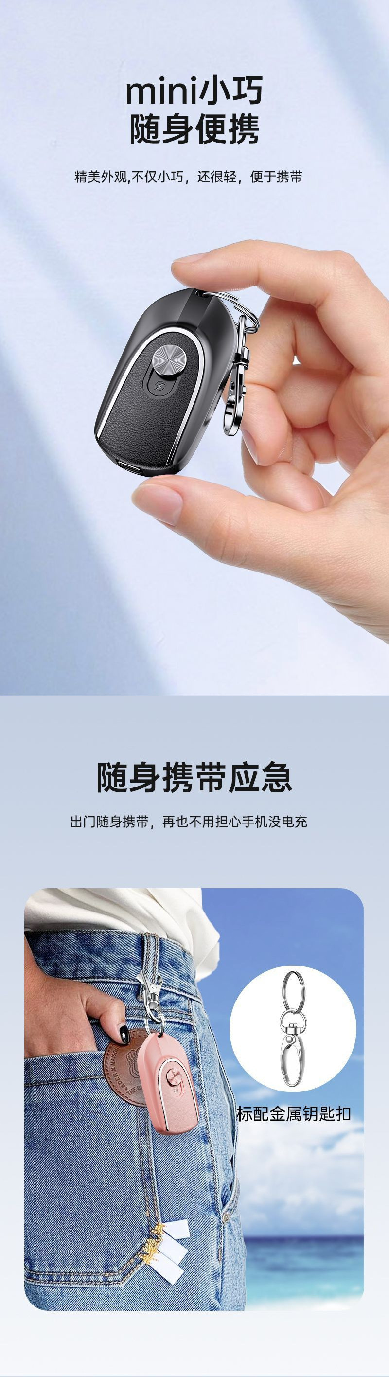 키 체인 충전 보물 대용량 미니 비상 캡슐 포켓 초박형 소형 휴대용 비상 충전 보물