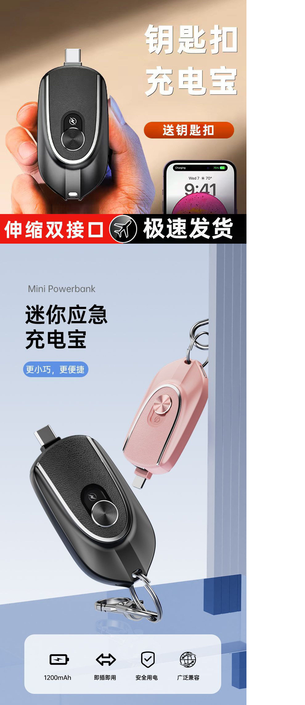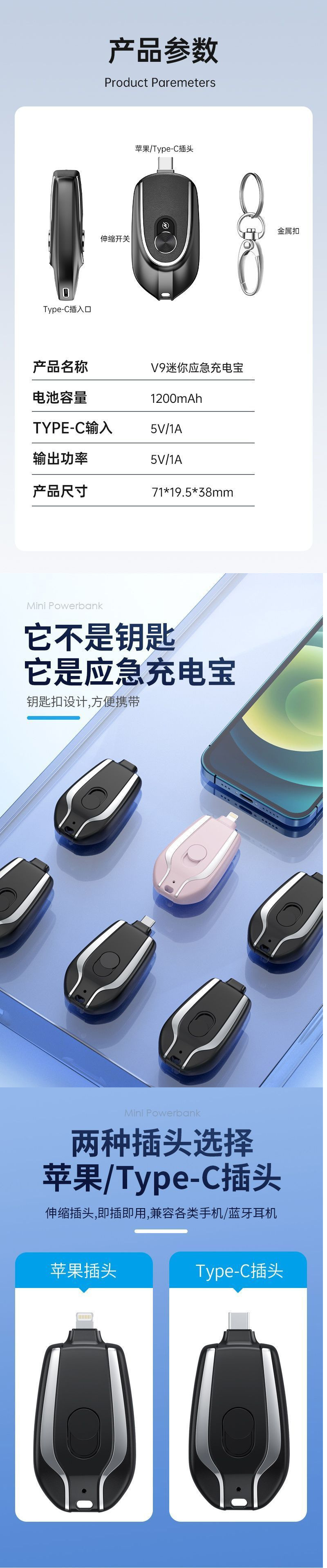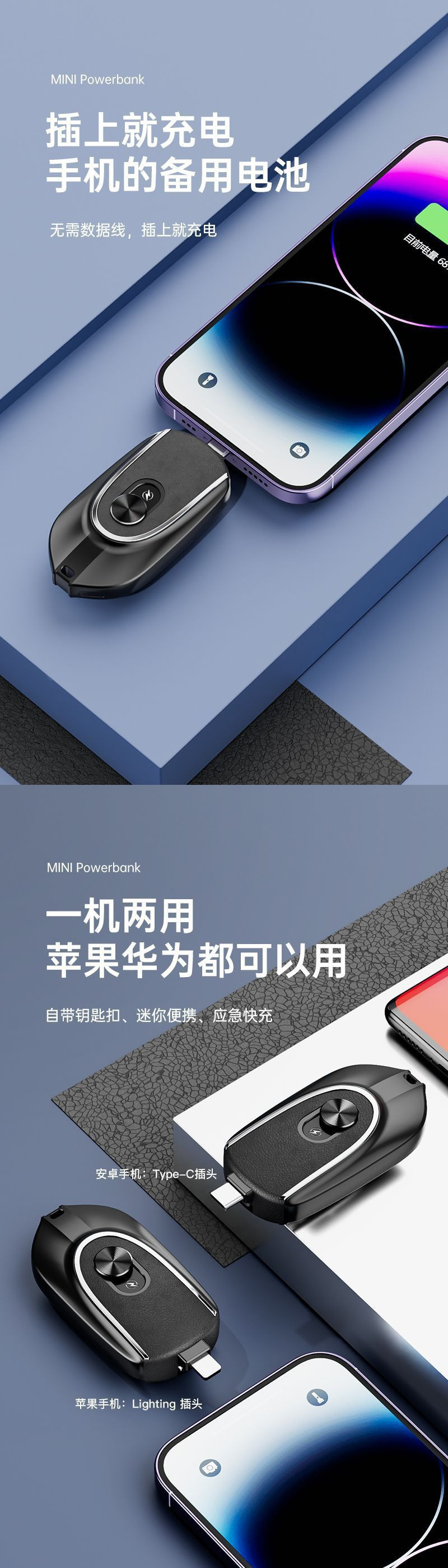 키 체인 충전 보물 대용량 미니 비상 캡슐 포켓 초박형 소형 휴대용 비상 충전 보물
