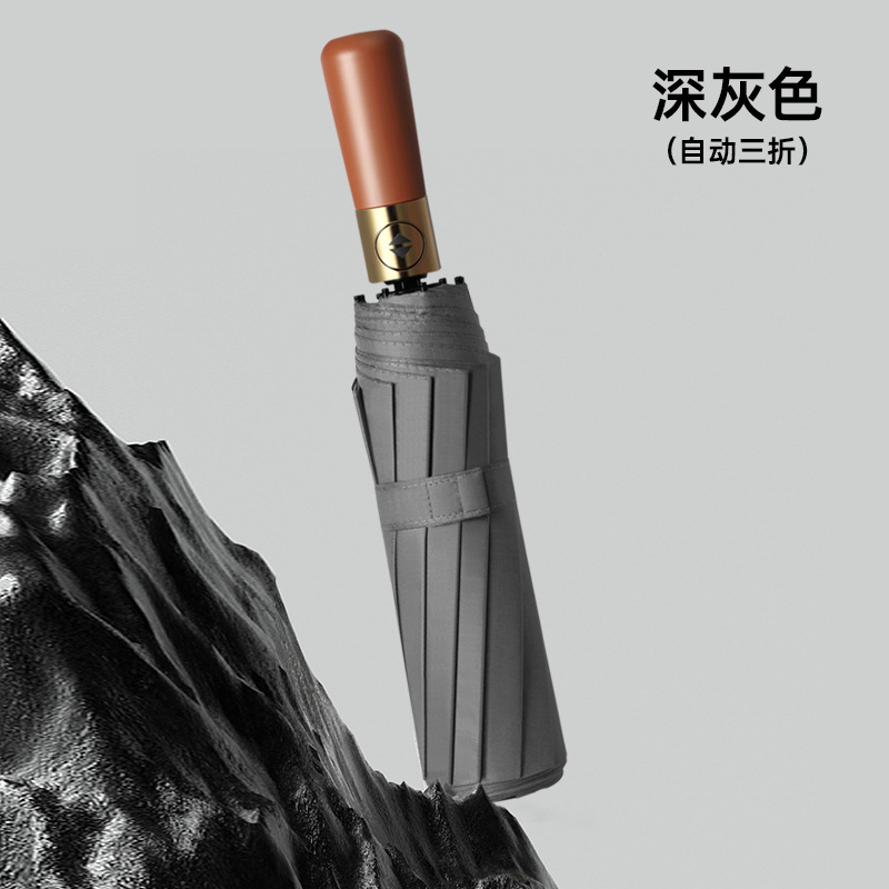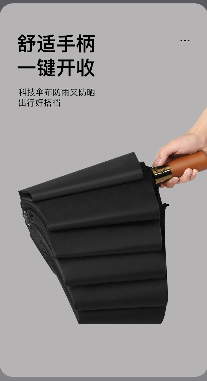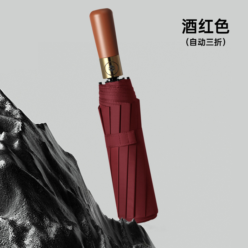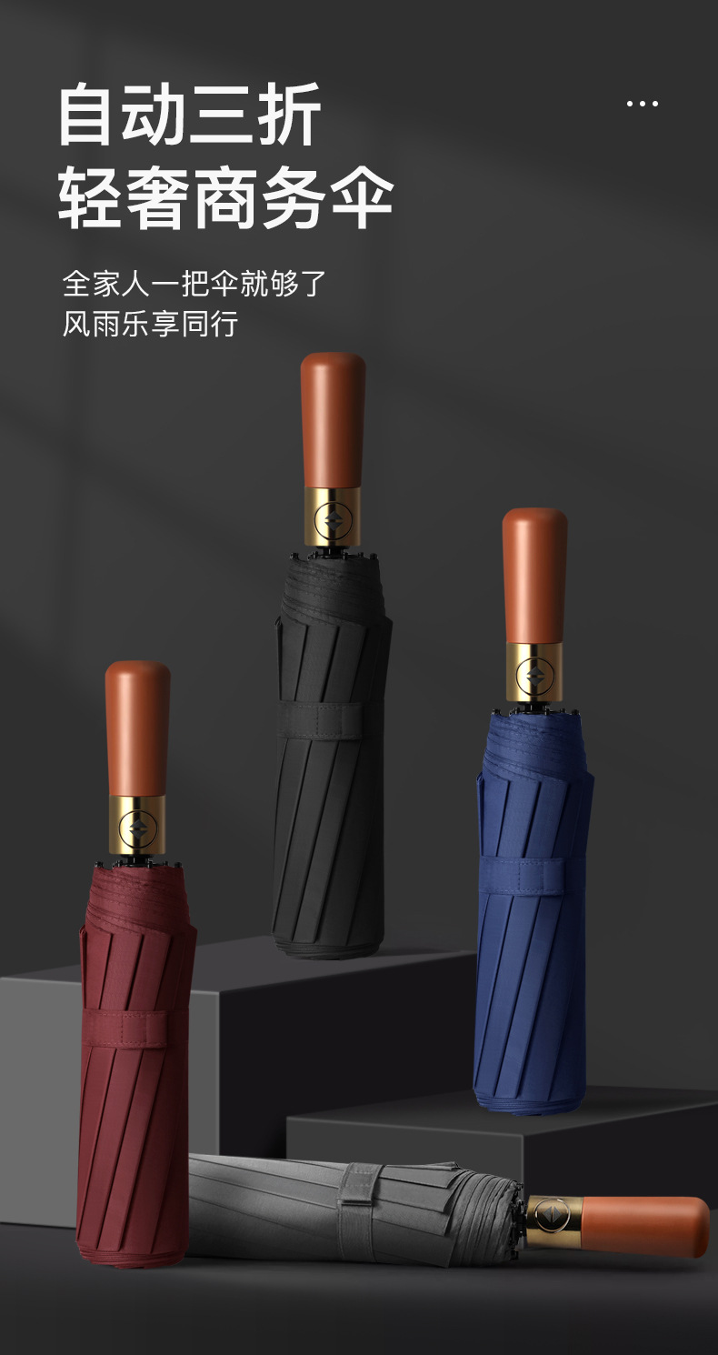 완전 자동 나무 손잡이 스타일 심플한 양산, 비즈니스 광고 맞춤형, 대형 이중용 자외선 차단 양산, 비와 햇빛 모두 사용 가능스토어 가기