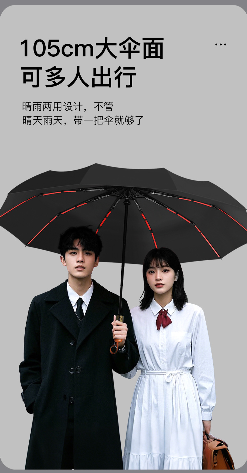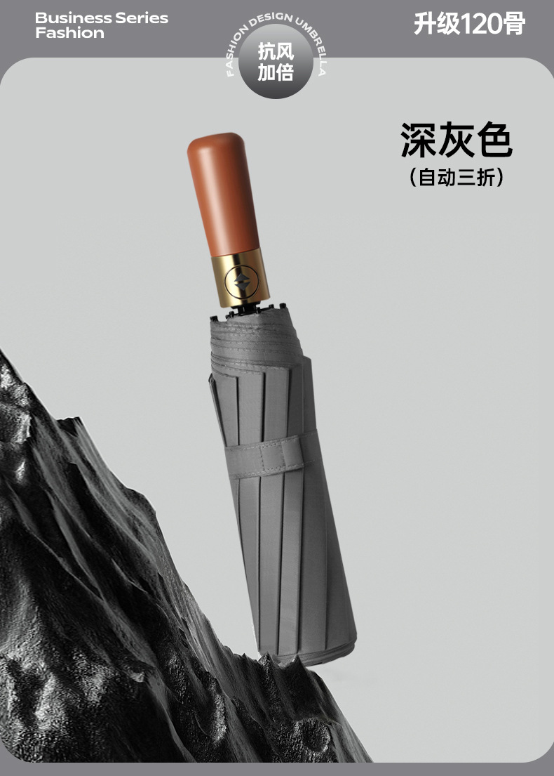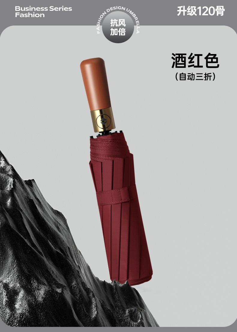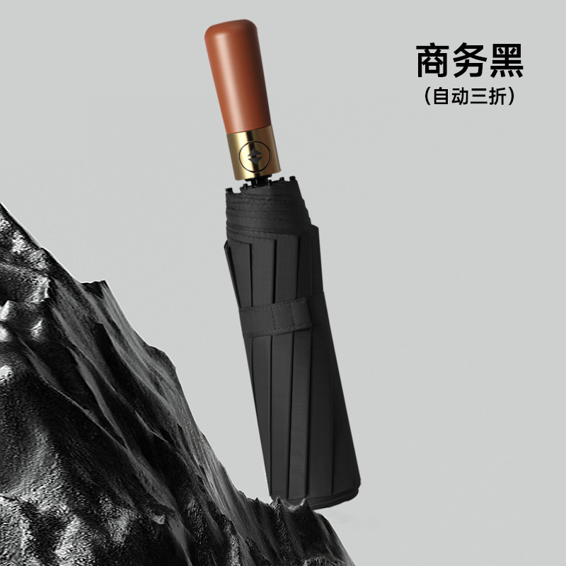 완전 자동 나무 손잡이 스타일 심플한 양산, 비즈니스 광고 맞춤형, 대형 이중용 자외선 차단 양산, 비와 햇빛 모두 사용 가능스토어 가기