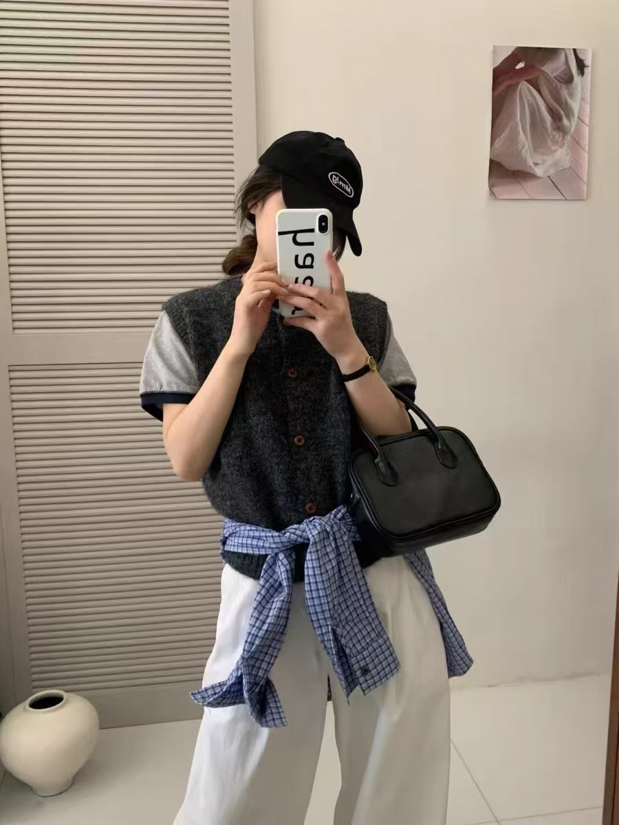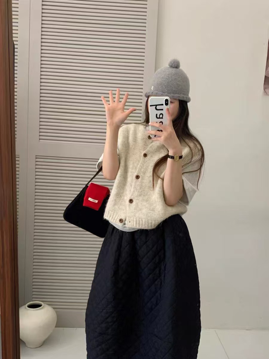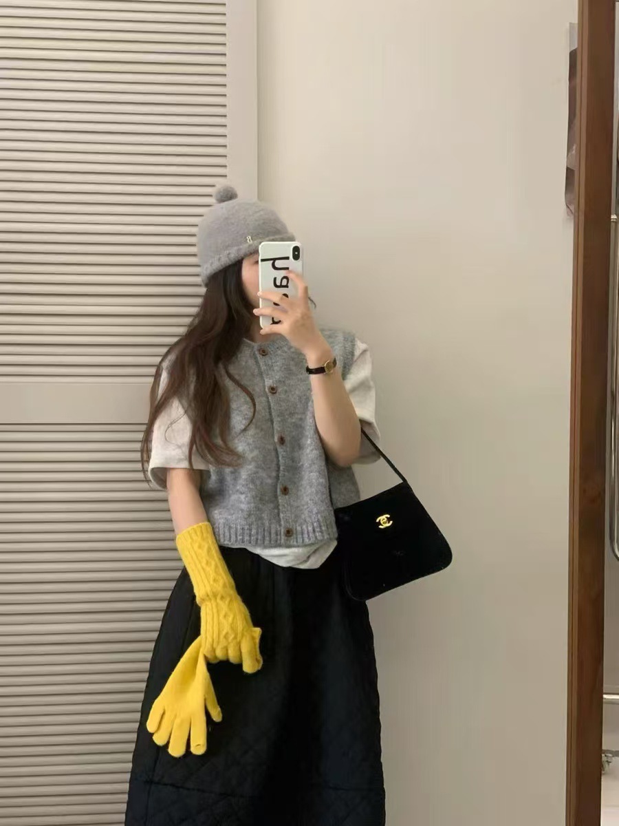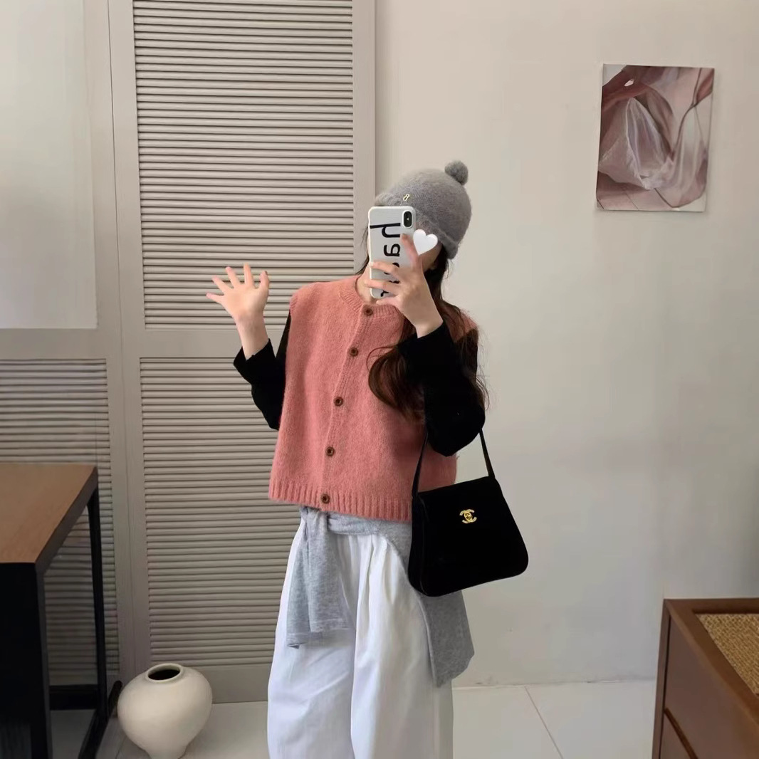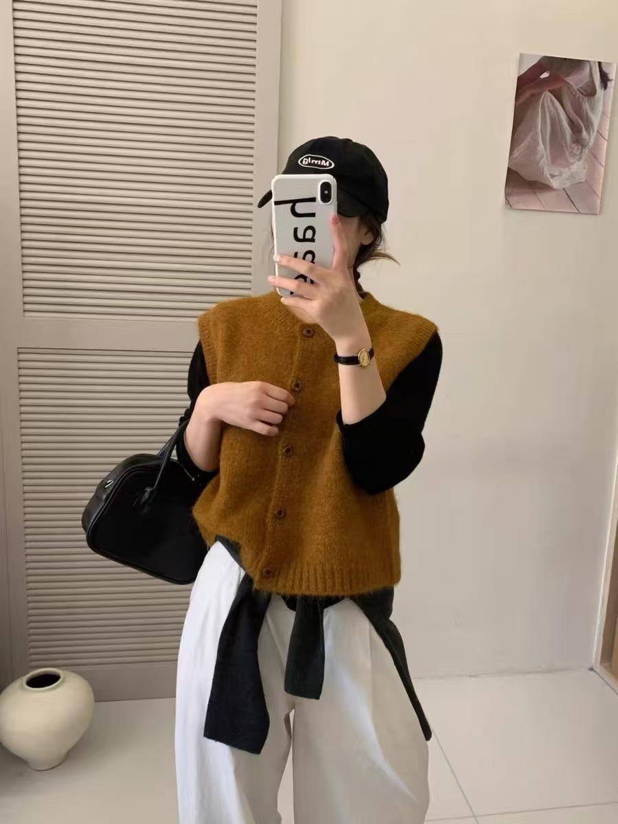 한국식 레트로 라운드 넥 니트 조끼 여성 봄과 가을 새로운 쌓인 외부 민소매 싱글 브레스트 스웨터 웨이스트 코트스토어 가기
