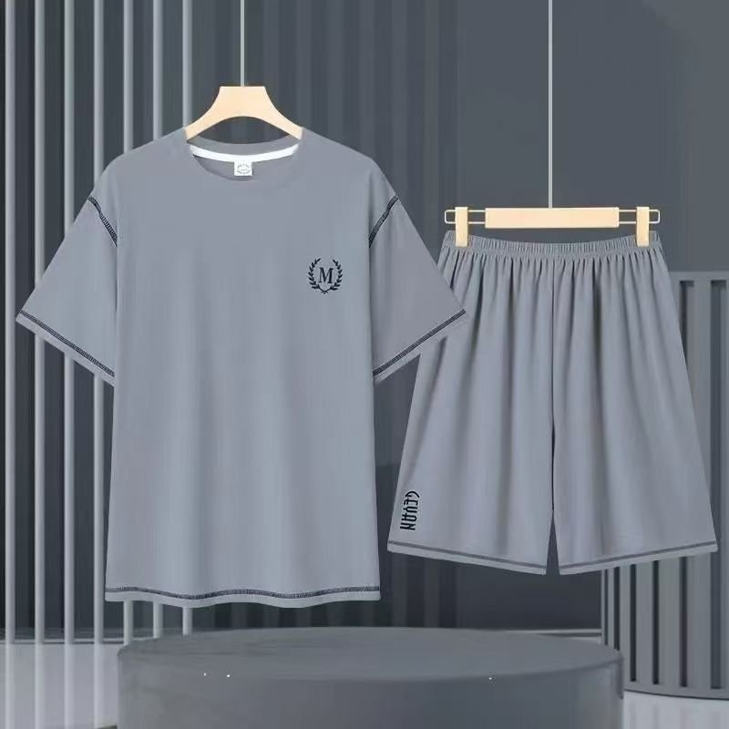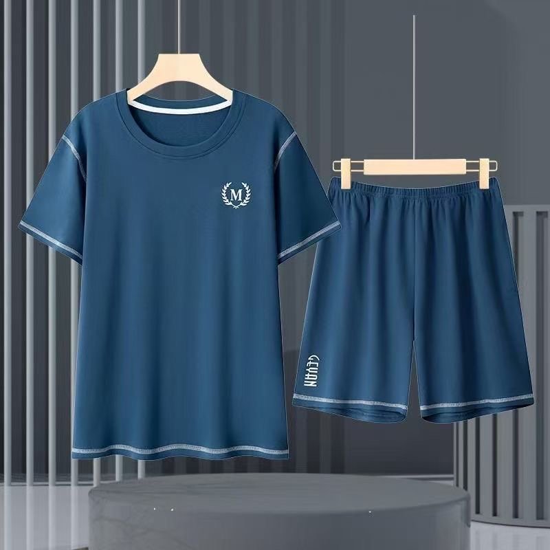 잠옷 남자 여름 모달 반팔 반바지 둥근 목 세트 간단한 캐주얼 얇은 멋진 홈 옷