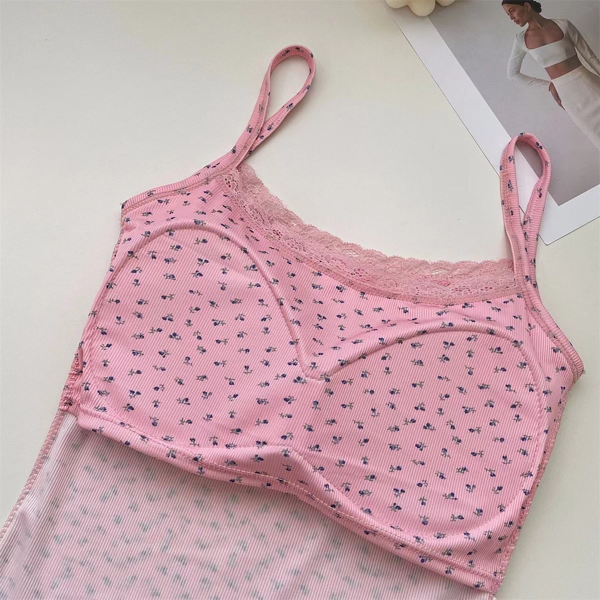 여성을 위한 크로스보더 직접 판매 인기 아이스 실크 꽃무늬 레이스 보우 캐미솔, 달콤하고 다재다능하며 작은 가슴 슬리밍 아우터웨어스토어 가기