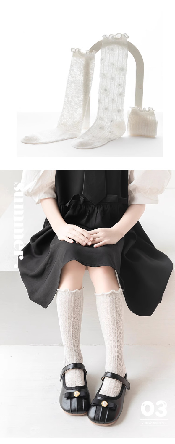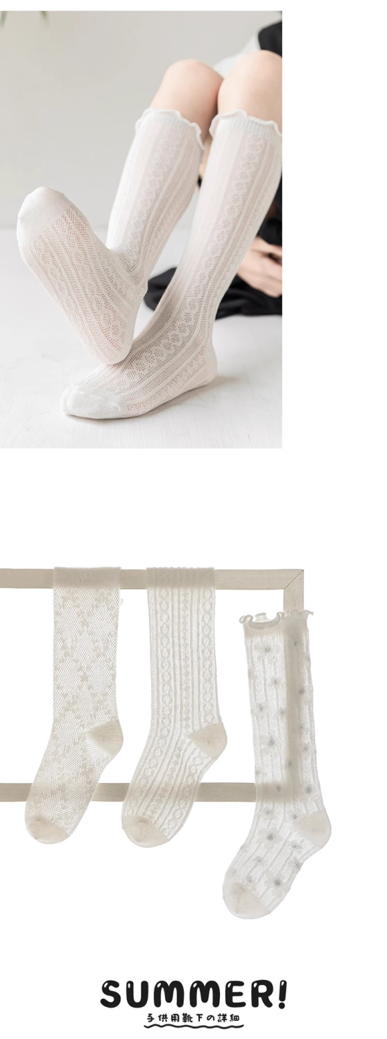 소녀 양말 봄과 여름 얇은 소녀 어린이 나무 귀 중간 양말 여름 아기 메쉬 통기성 스타킹