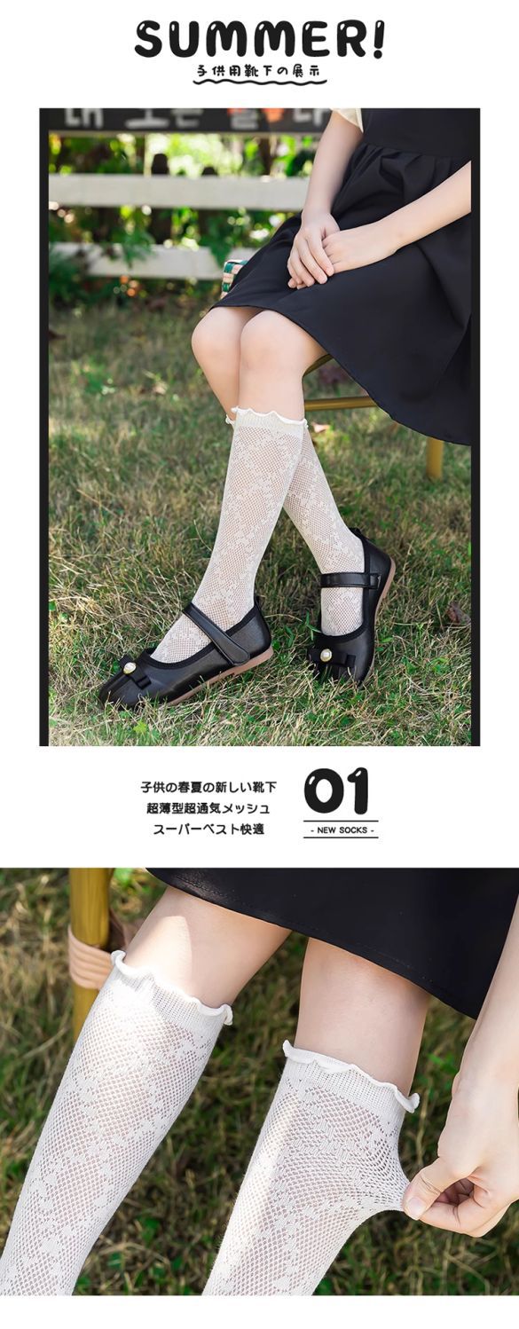 소녀 양말 봄과 여름 얇은 소녀 어린이 나무 귀 중간 양말 여름 아기 메쉬 통기성 스타킹스토어 가기