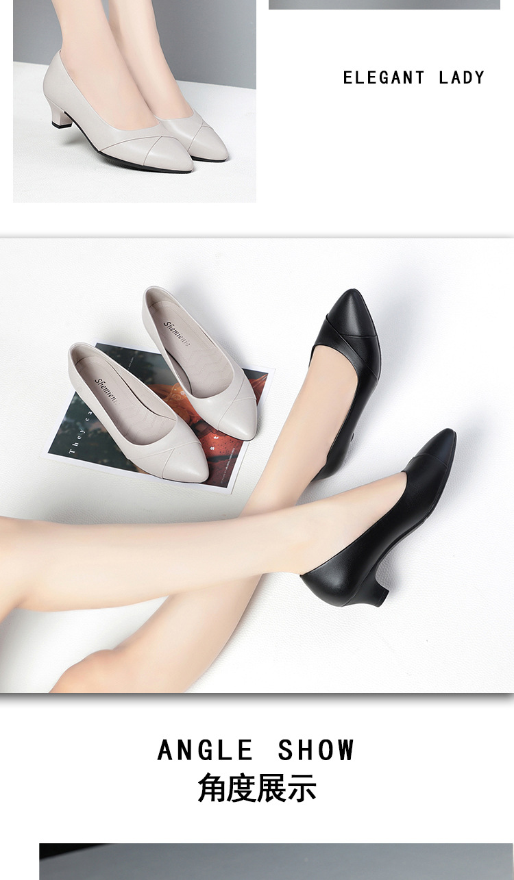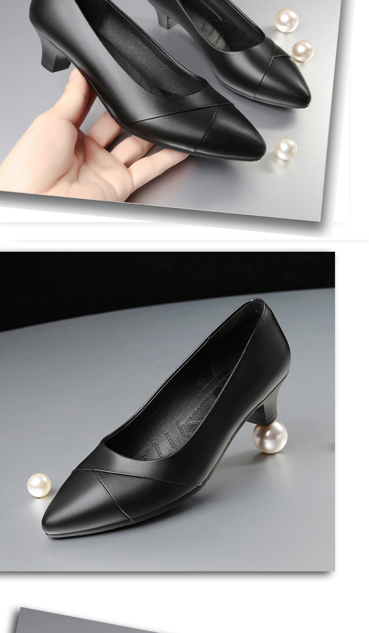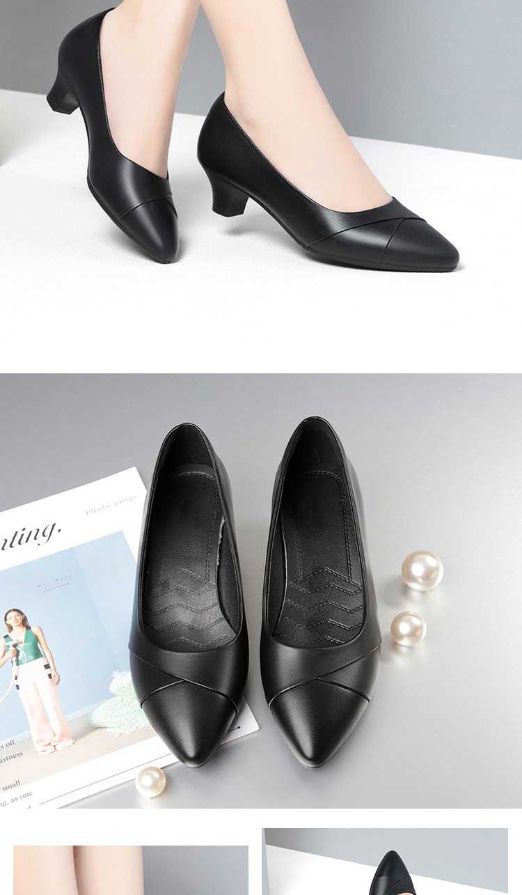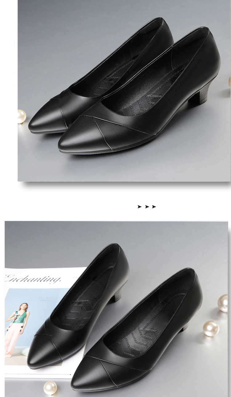 얕은 입 블랙 작업복 전문 가죽 신발 싱글 레이어 신발 여성 신발 봄과 가을 부드러운 가죽 부드러운 바닥 작은 발 뒤꿈치 긴 작업 신발스토어 가기