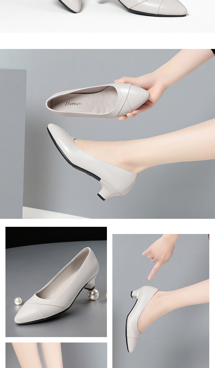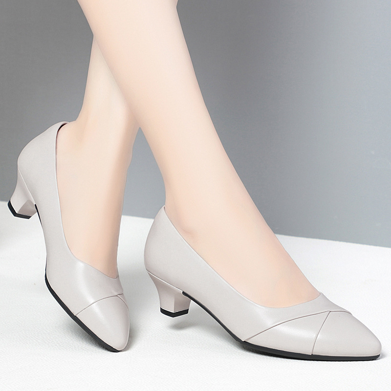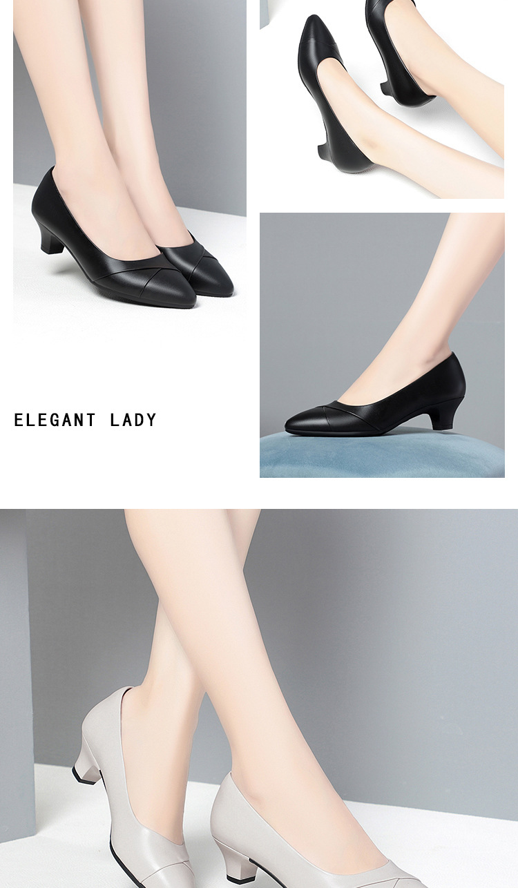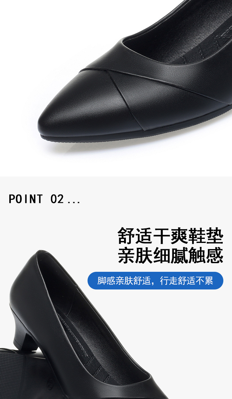 얕은 입 블랙 작업복 전문 가죽 신발 싱글 레이어 신발 여성 신발 봄과 가을 부드러운 가죽 부드러운 바닥 작은 발 뒤꿈치 긴 작업 신발스토어 가기