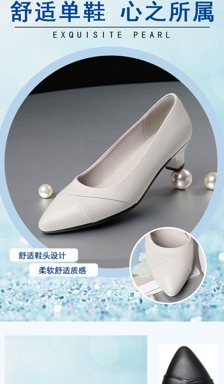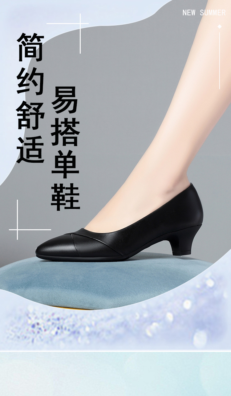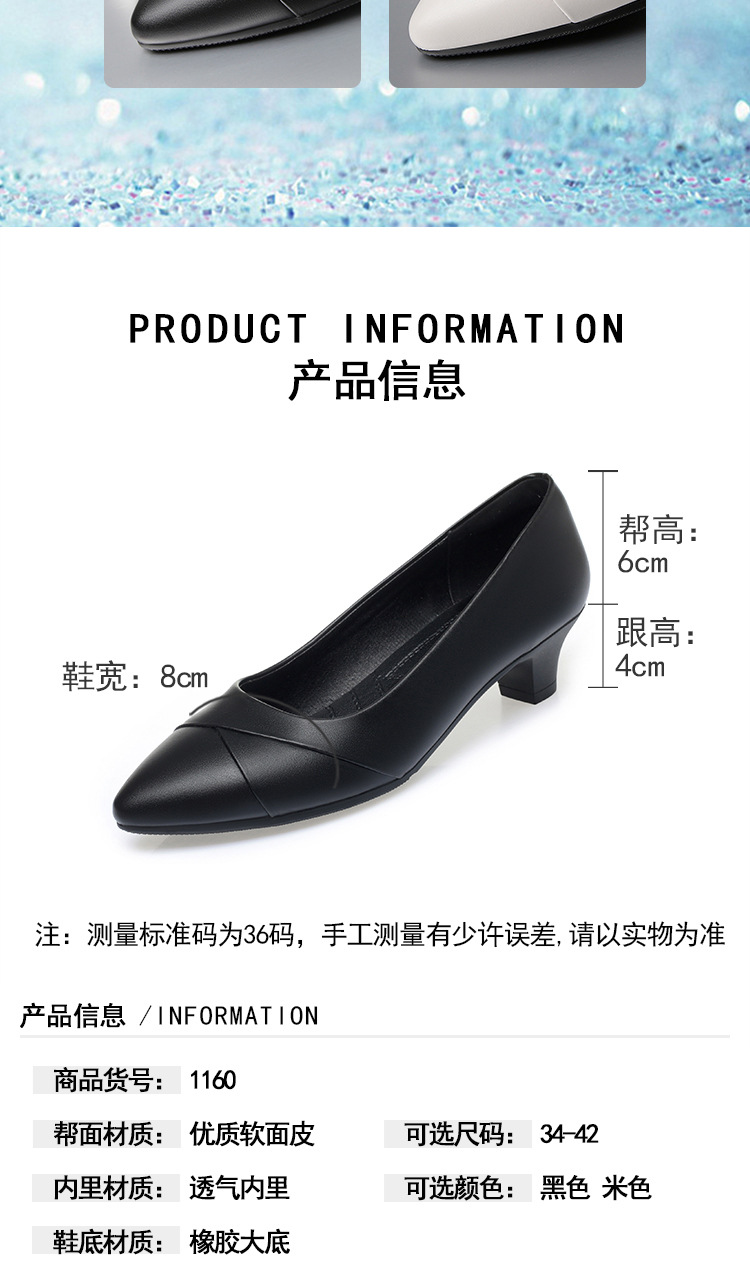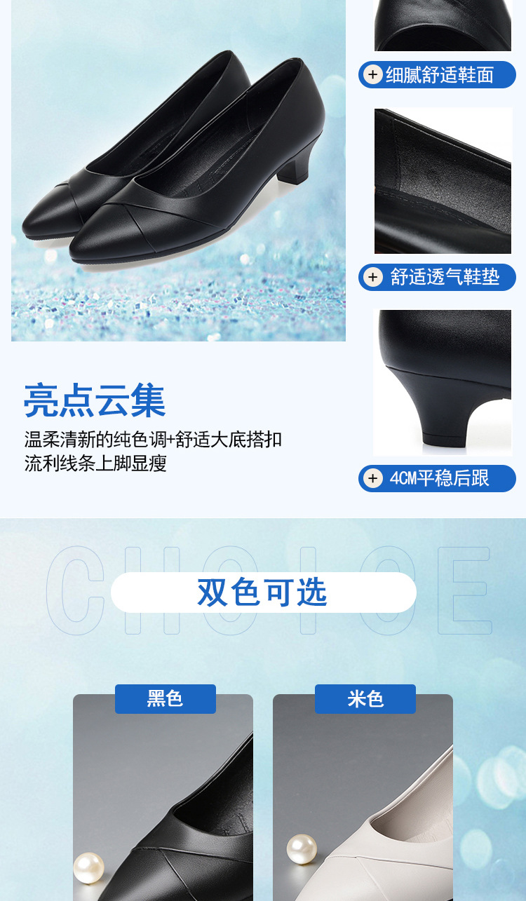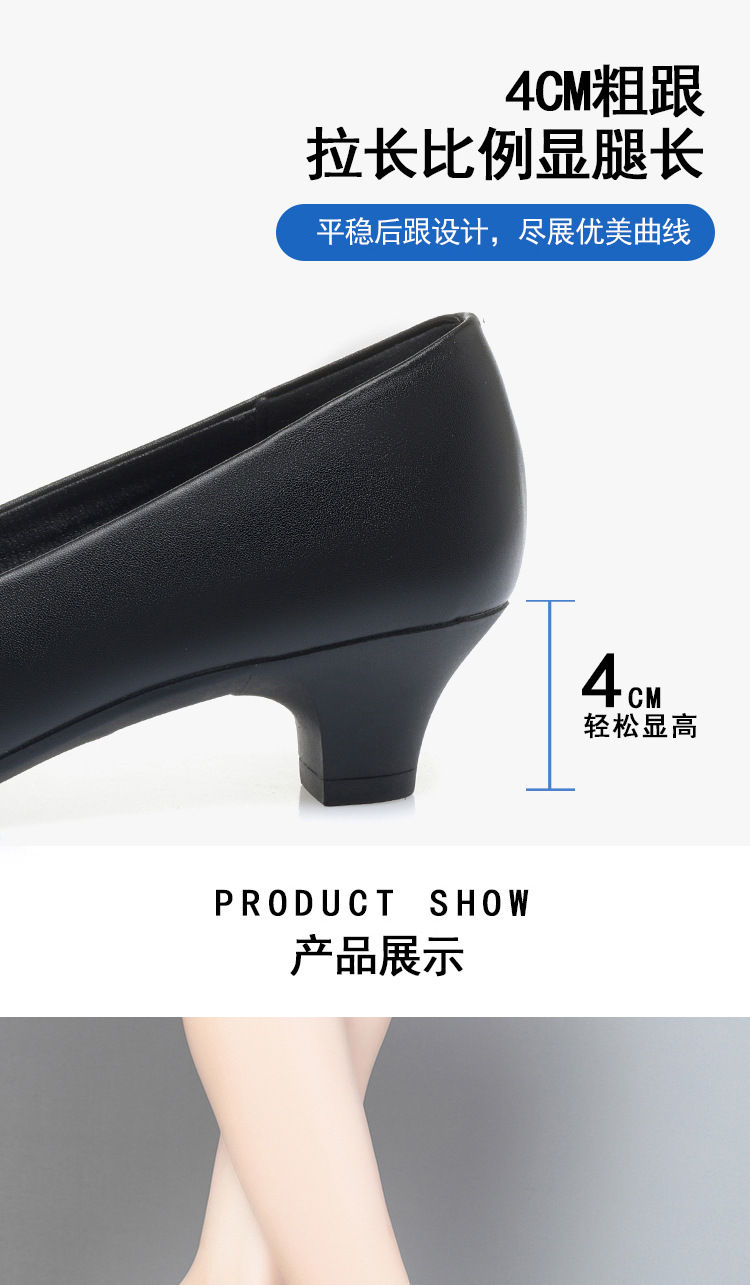얕은 입 블랙 작업복 전문 가죽 신발 싱글 레이어 신발 여성 신발 봄과 가을 부드러운 가죽 부드러운 바닥 작은 발 뒤꿈치 긴 작업 신발