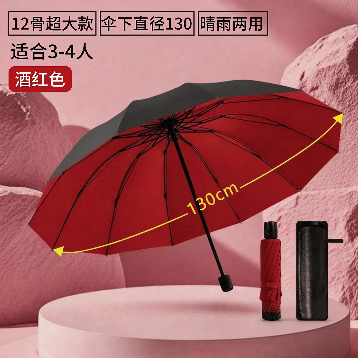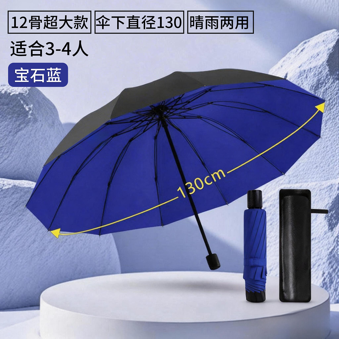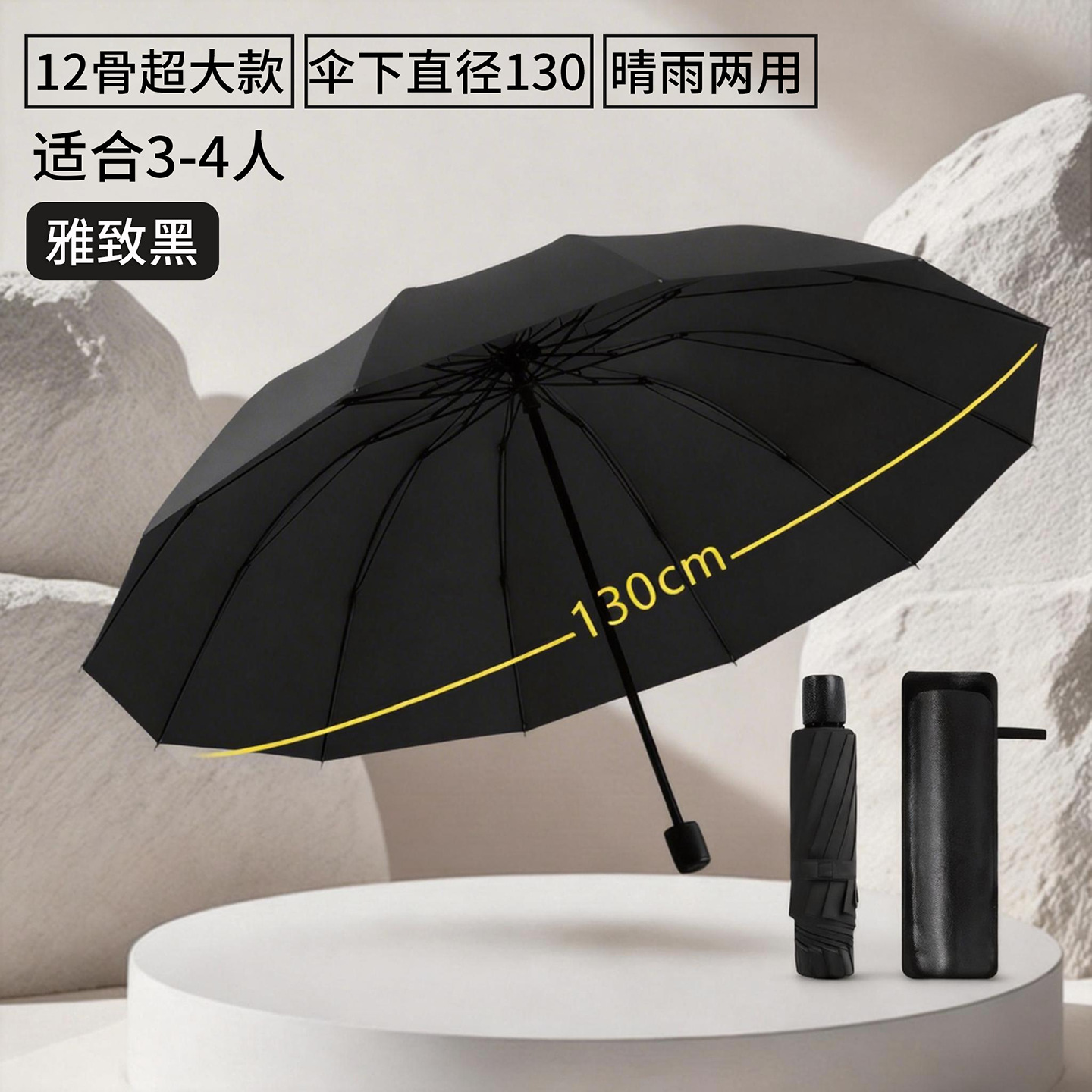 12-뼈 확대 검은 고무 우산 이중 사용 남성 비즈니스 우산 3 배 자외선 차단제 이중 광고 우산 도매