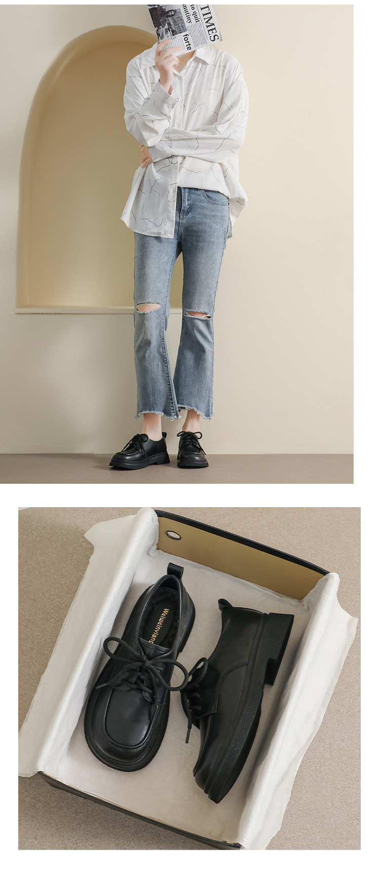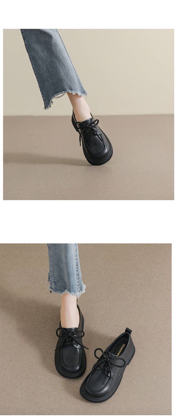 여성용 두꺼운 밑창 슬립온 로퍼, 스커트와 함께 착용, 2025 가을 겨울 영국 스타일 레이스업 두꺼운 굽 싱글 슈즈, 여성용 큰 사이즈 신발스토어 가기