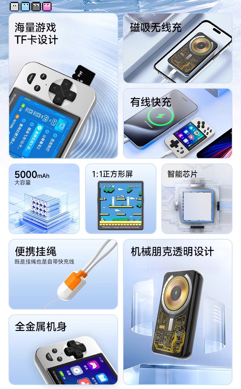 인기 자석 충전식 보조배터리, 향수를 불러일으키는 레트로 게임, 고급 고화질 게임 휴대용 아케이드