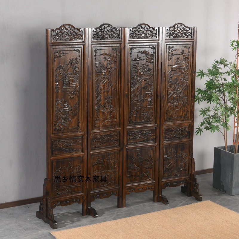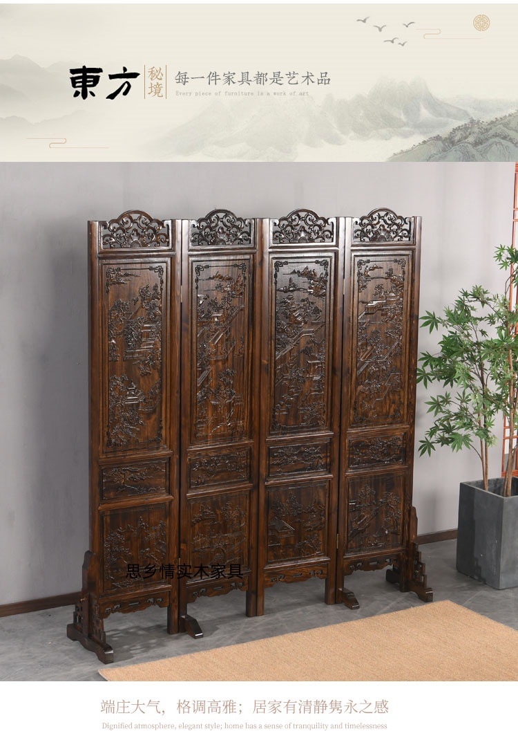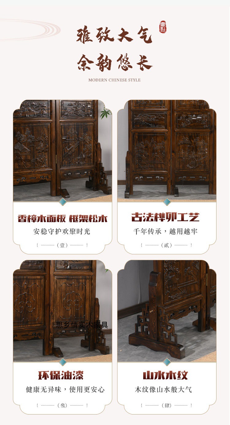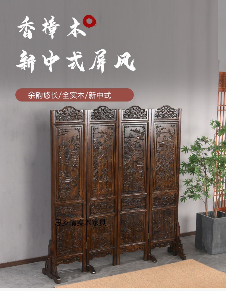 중국 골동품 Camphor 나무 조각 접이식 스크린 단단한 나무 사무실 음영 화면 순수한 단단한 나무 중공 조각 파티션스토어 가기