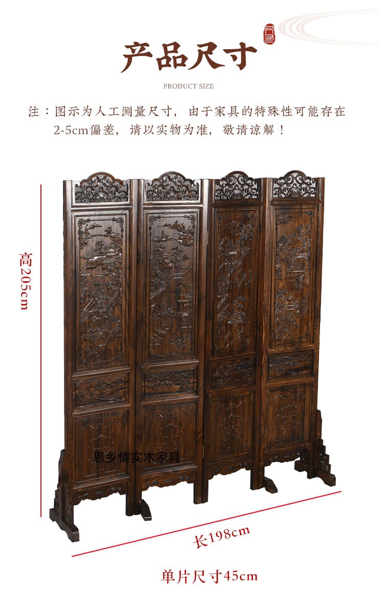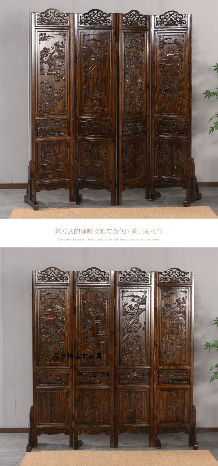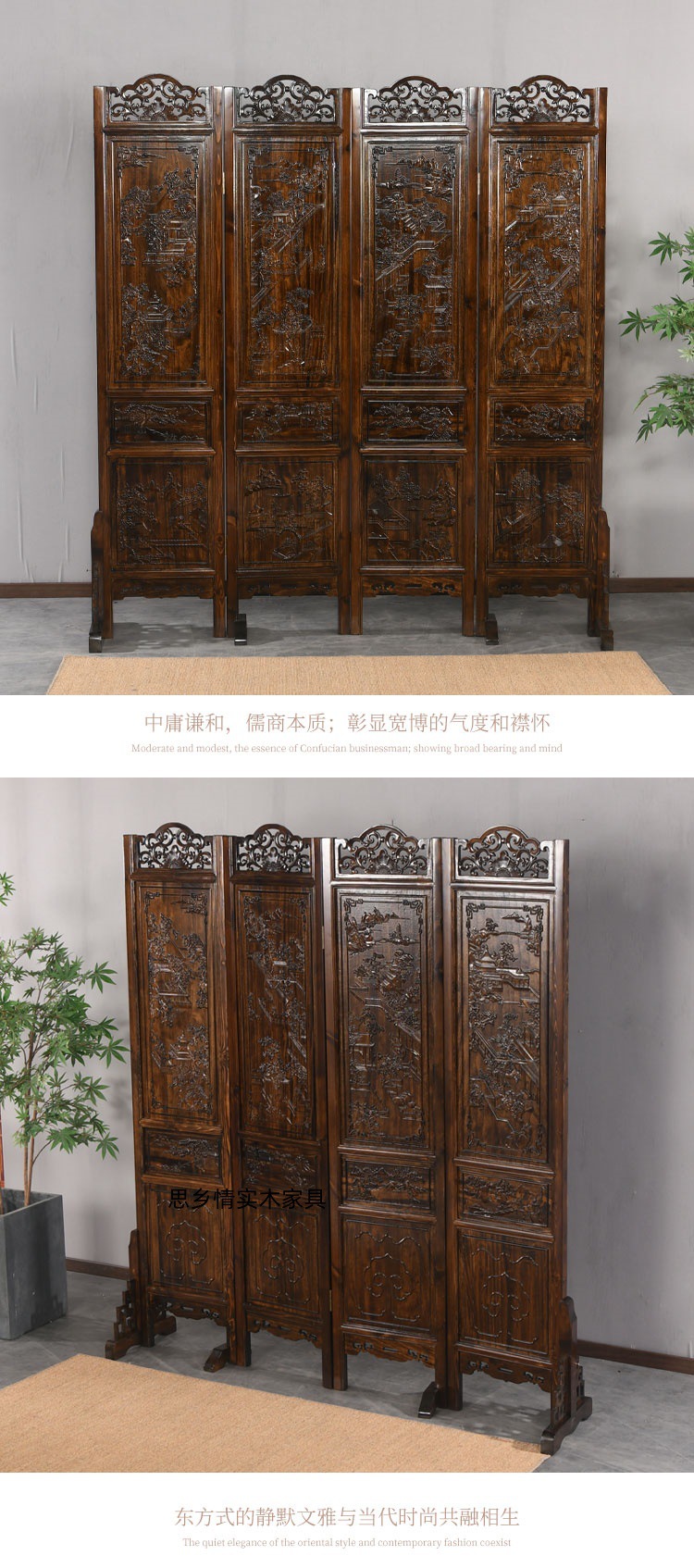 중국 골동품 Camphor 나무 조각 접이식 스크린 단단한 나무 사무실 음영 화면 순수한 단단한 나무 중공 조각 파티션스토어 가기