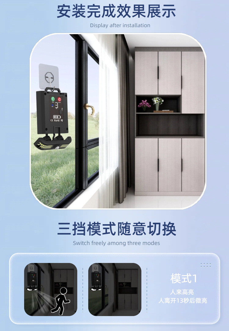 야간 통로 캐비닛 침실 통합 충전식 LED 발코니 야간 조명을위한 태양열 인체 유도 램프스토어 가기