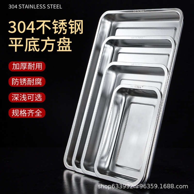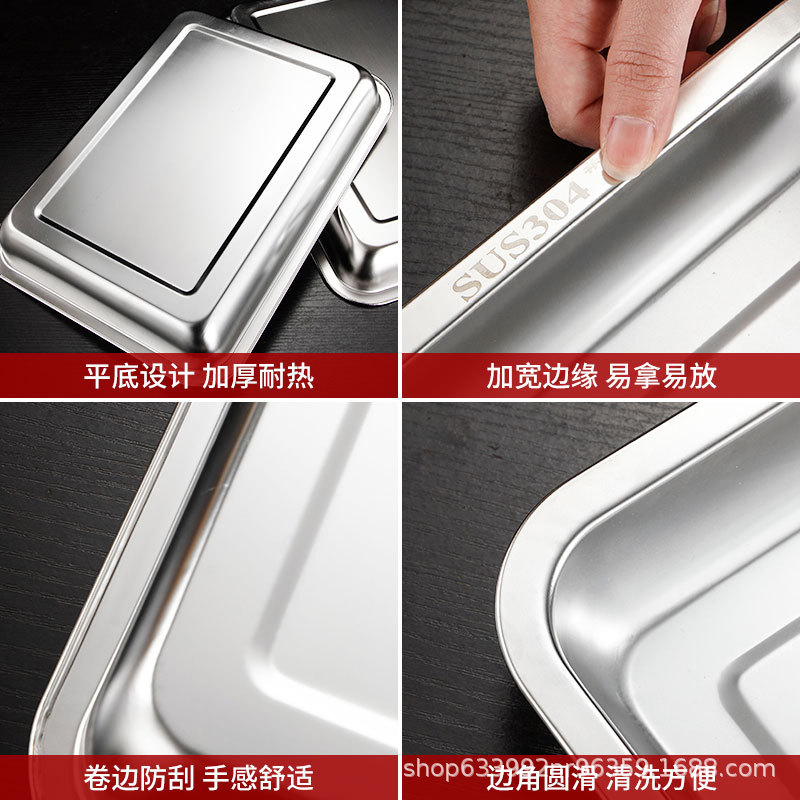 304 스테인레스 스틸 스퀘어 플레이트 직사각형 트레이 호텔 플레이트 바베큐 플레이트 플랫 하단 찐 생선 플레이트 찐 쌀판 만두 플레이트 60스토어 가기