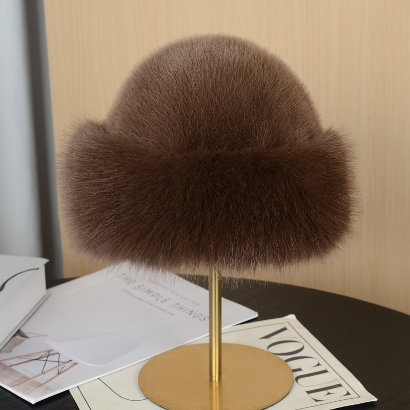 가을 겨울 방한 및 따뜻한 모조 플러시 몽골 모자, 두꺼운 모피 귀 보호, 돔 민족 스타일, 다재다능하고 패셔너블한 몽골 모자
