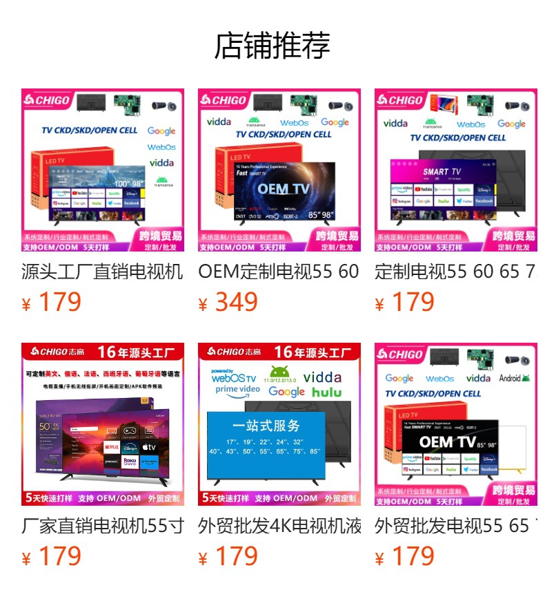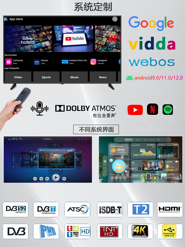 CKD/SKD 수출 맞춤형 75 85 98inch 스마트 네트워크 방폭형 4KQLED LCD 가정용 TV TV스토어 가기