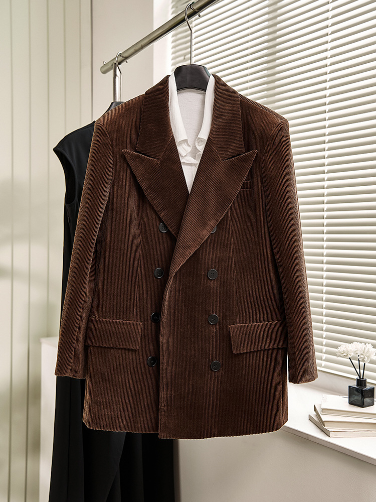 Kh * ite 2025 봄과 가을 새로운 코듀로이 세트 재킷 여성 틈새 디자인 캐주얼 세트 여성 의류스토어 가기