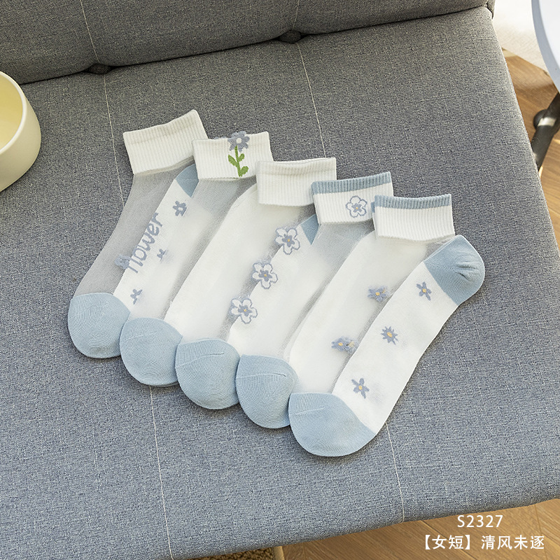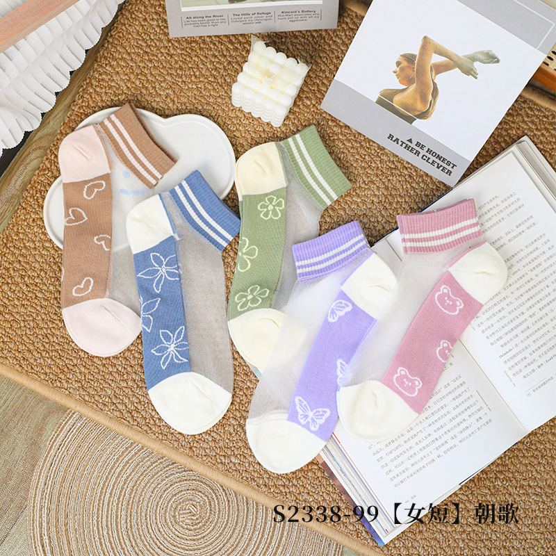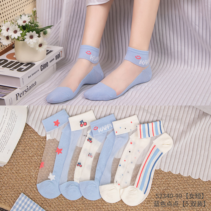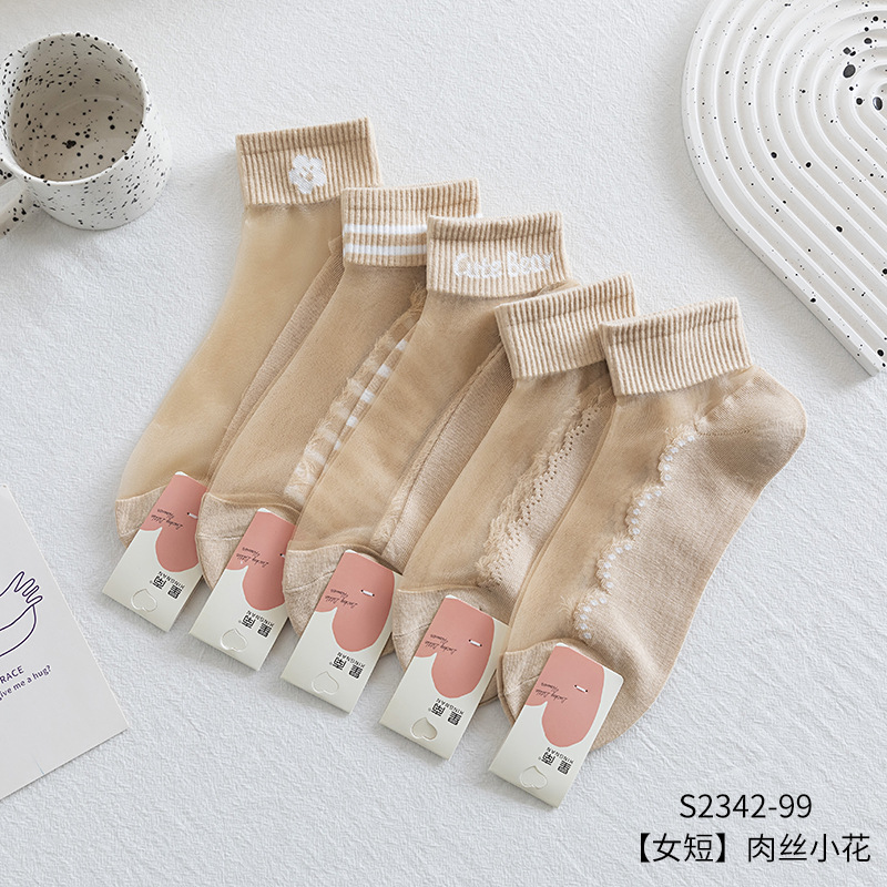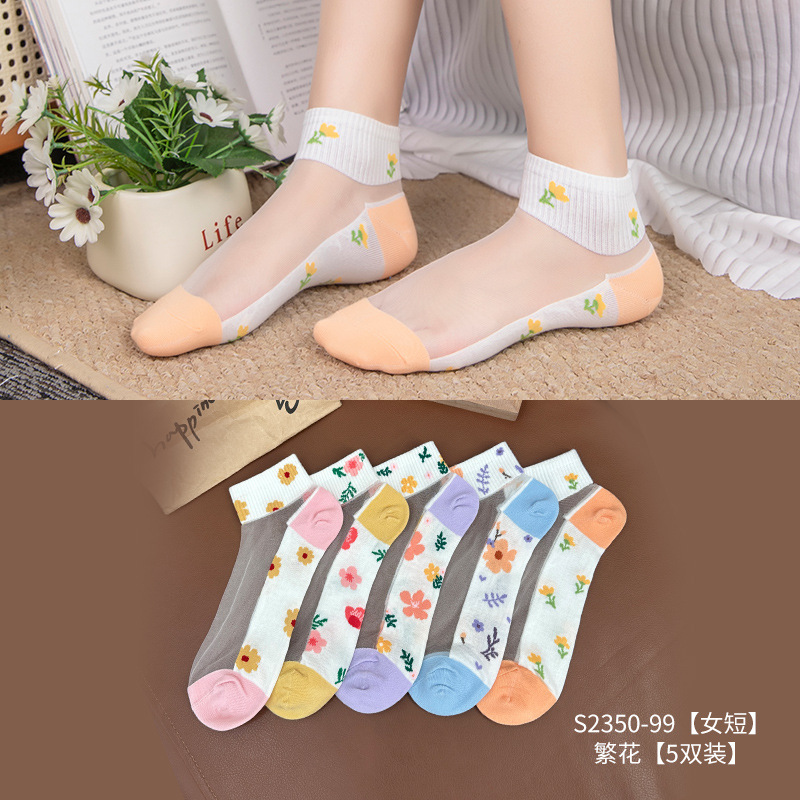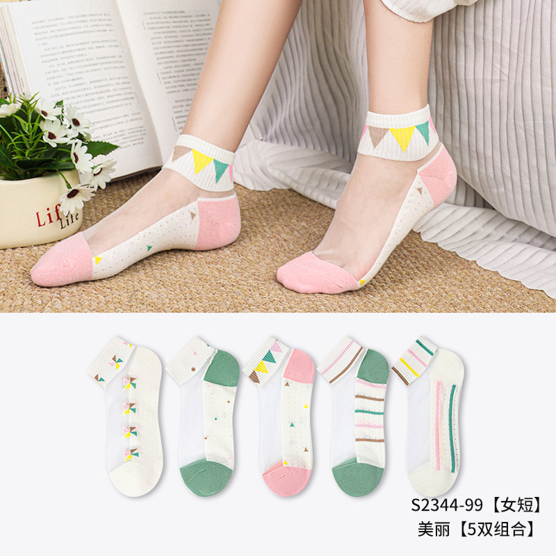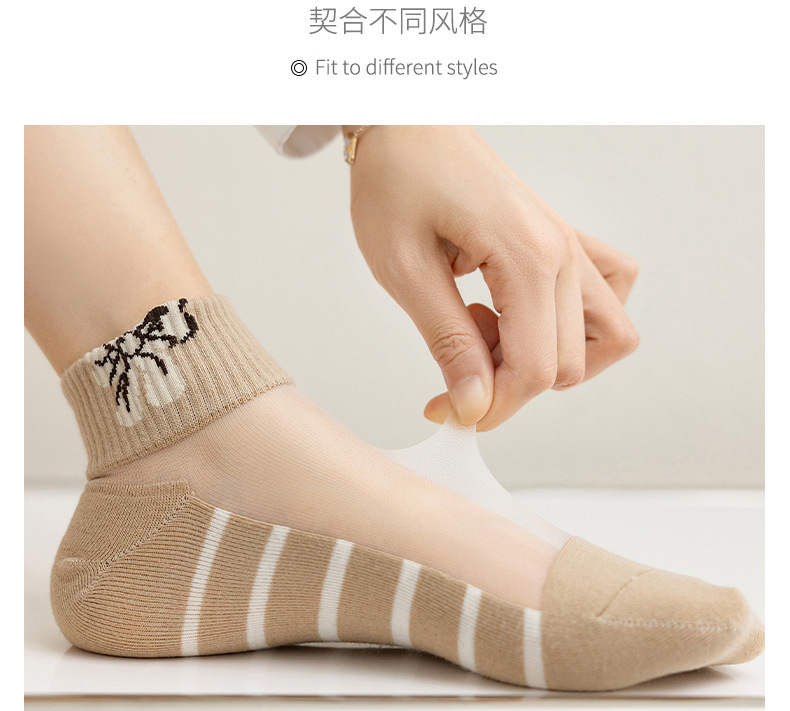 크리스탈 스타킹 여성의 여름 얇은 코튼 하단 미끄럼 방지 훅 실크 유리 스타킹 통기성 땀 흡수 캣 실크 여성용 양말스토어 가기