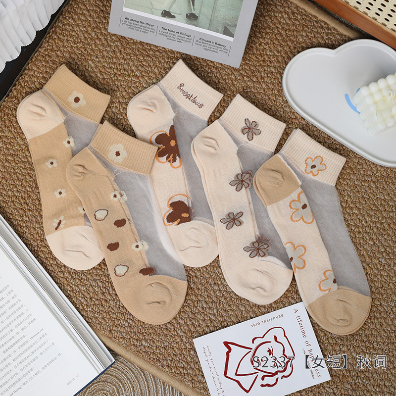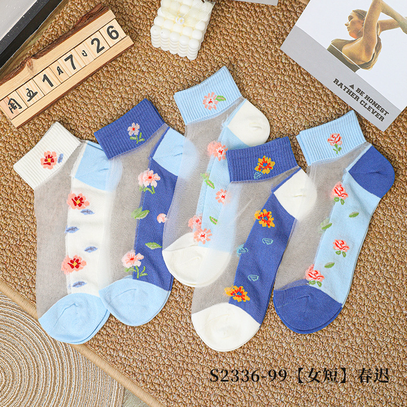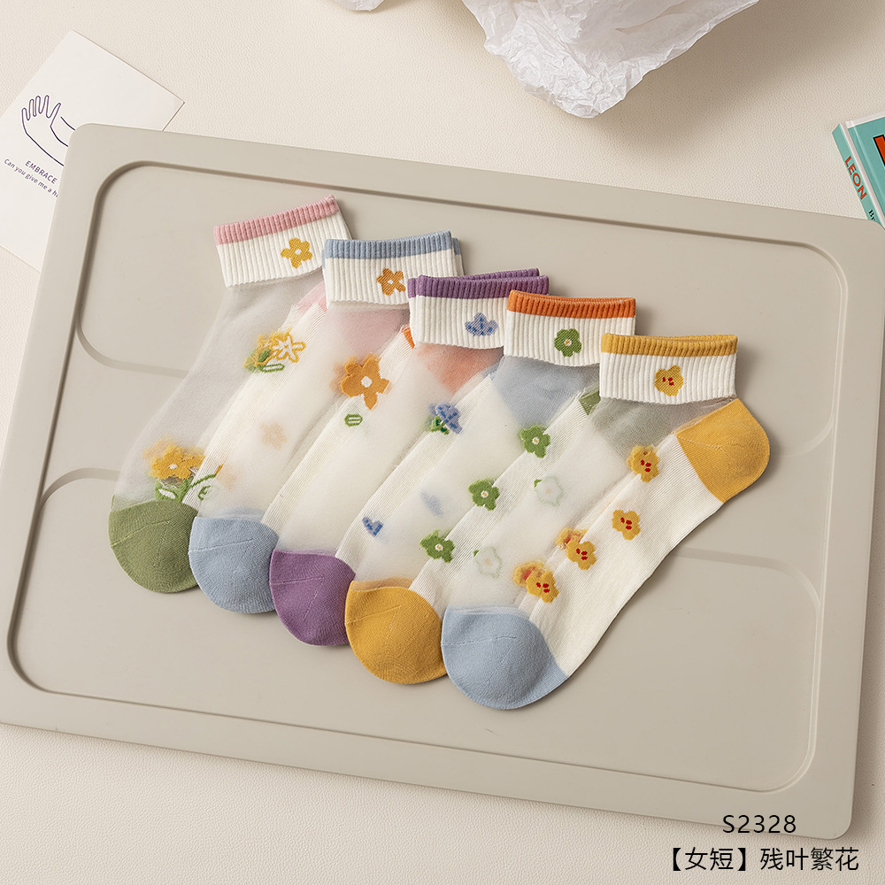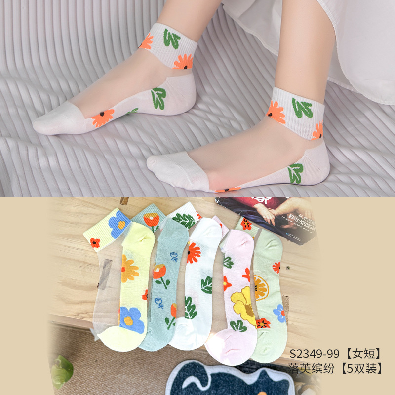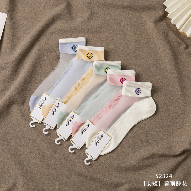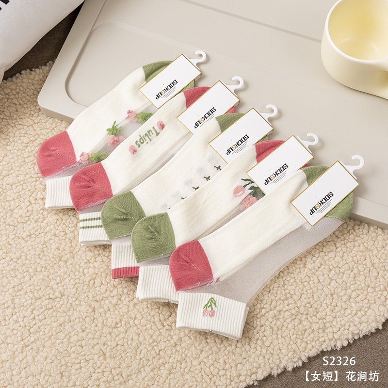 크리스탈 스타킹 여성의 여름 얇은 코튼 하단 미끄럼 방지 훅 실크 유리 스타킹 통기성 땀 흡수 캣 실크 여성용 양말스토어 가기