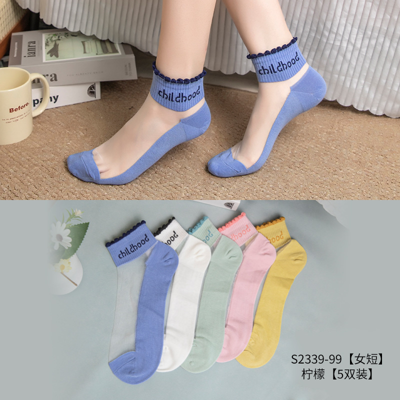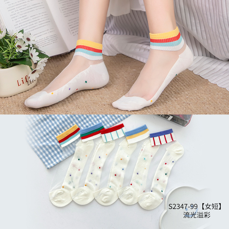 크리스탈 스타킹 여성의 여름 얇은 코튼 하단 미끄럼 방지 훅 실크 유리 스타킹 통기성 땀 흡수 캣 실크 여성용 양말