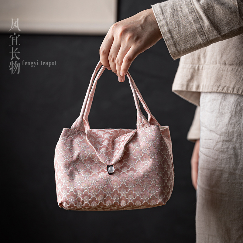 일본식 야외 휴대용 휴대용 대용량 저장 상자 직물 가방 브로케이드 여행 차 세트 익스프레스 컵 보관 가방스토어 가기