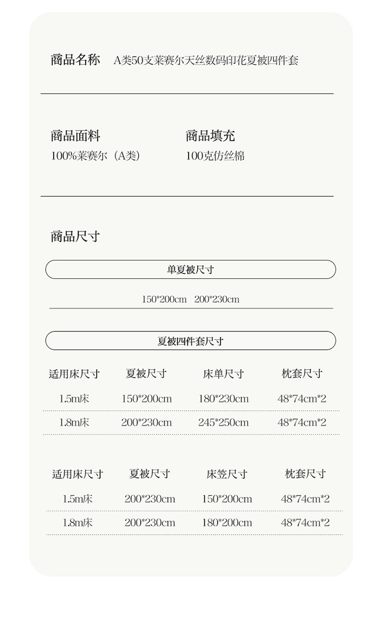 • <시트 4장 여름이불 200×230cm+시트 150×200cm+베갯잇 2장>