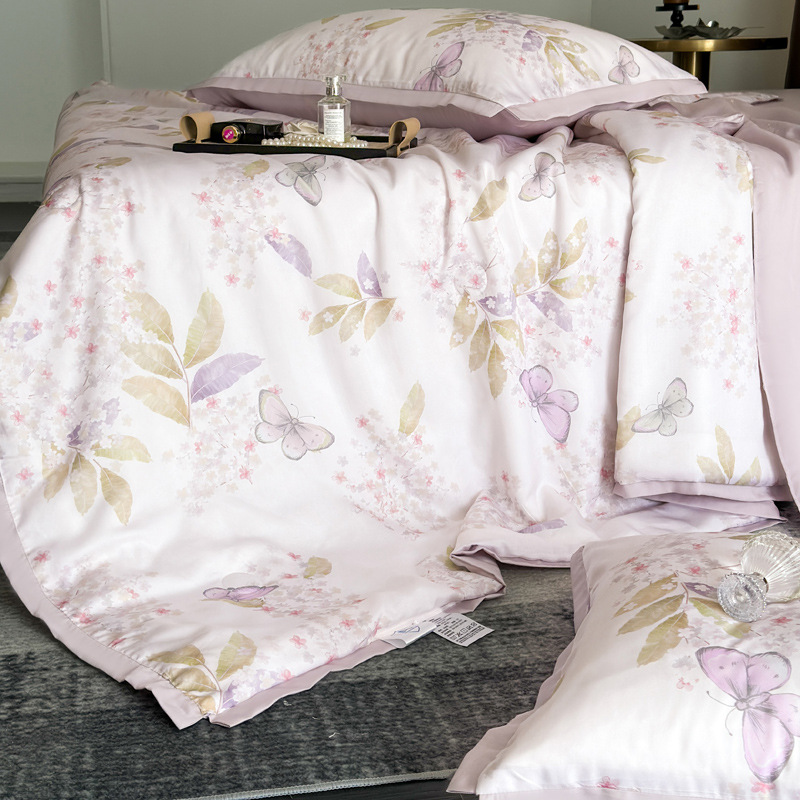 클래스 A Lyocell Tencel 여름 쿨 퀼트 싱글 에어 컨디셔닝 이불 아이스 실크 쿨 여름 이불 4 조각 기계 세탁기 얇은 이불 4 개스토어 가기