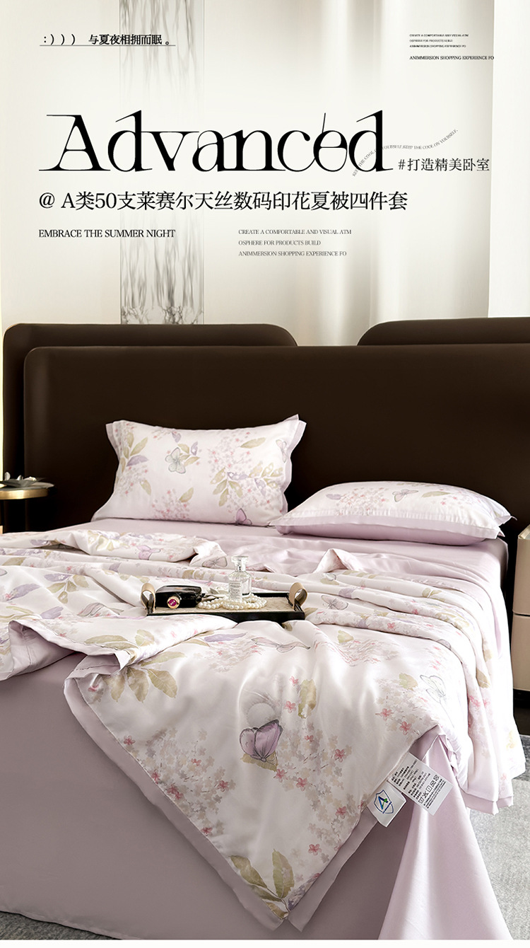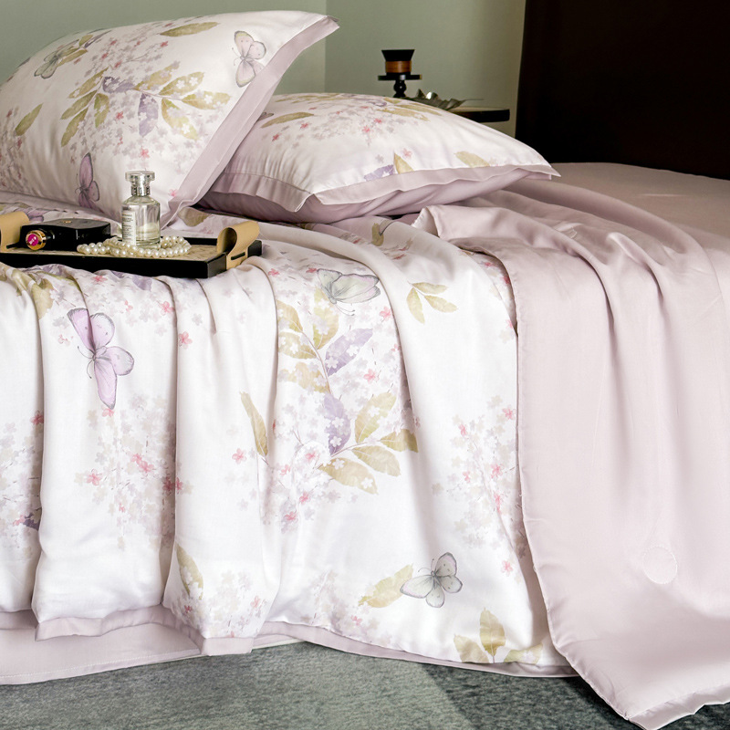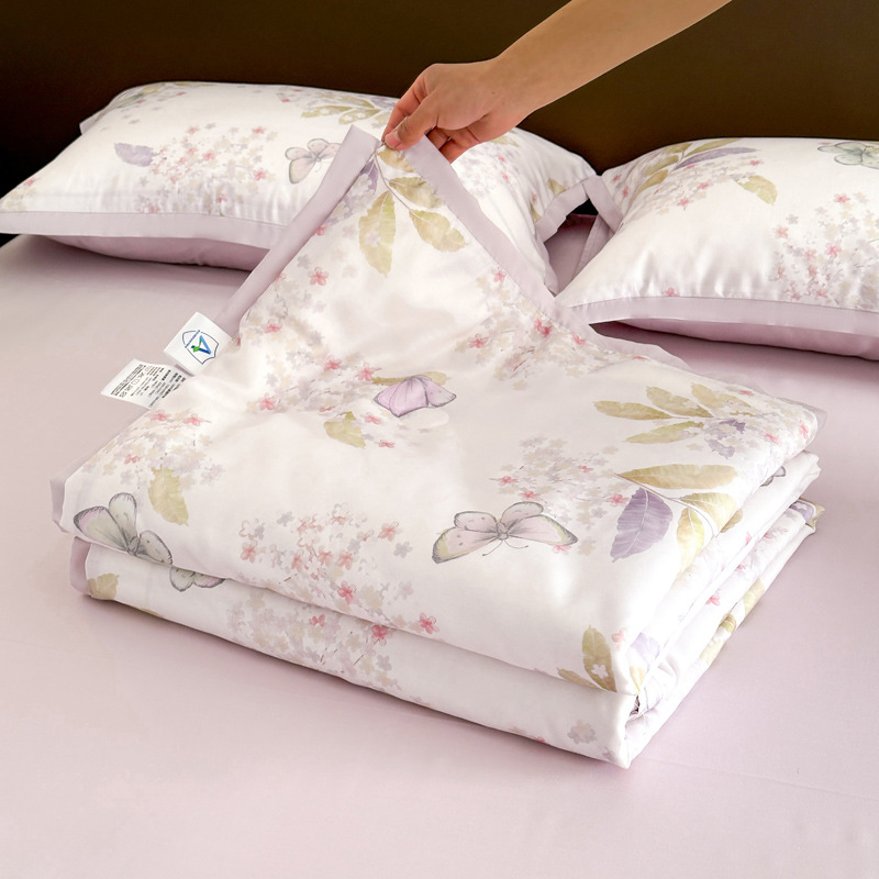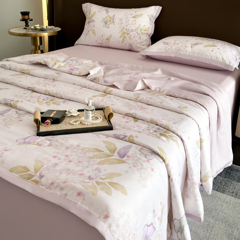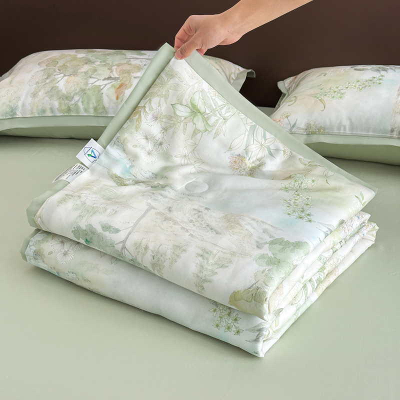 클래스 A Lyocell Tencel 여름 쿨 퀼트 싱글 에어 컨디셔닝 이불 아이스 실크 쿨 여름 이불 4 조각 기계 세탁기 얇은 이불 4 개