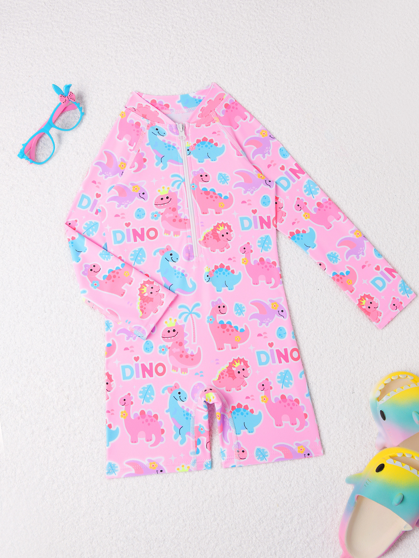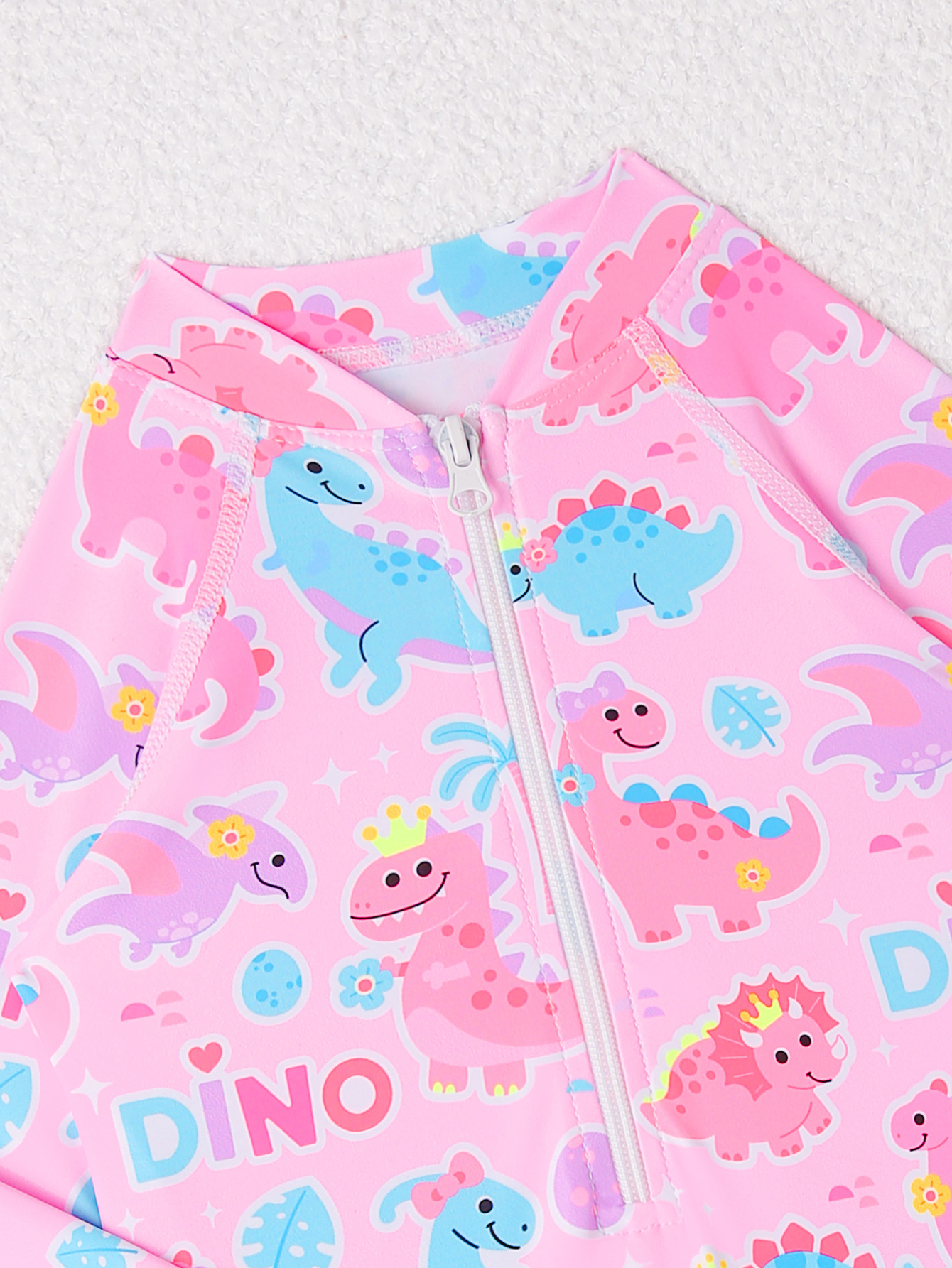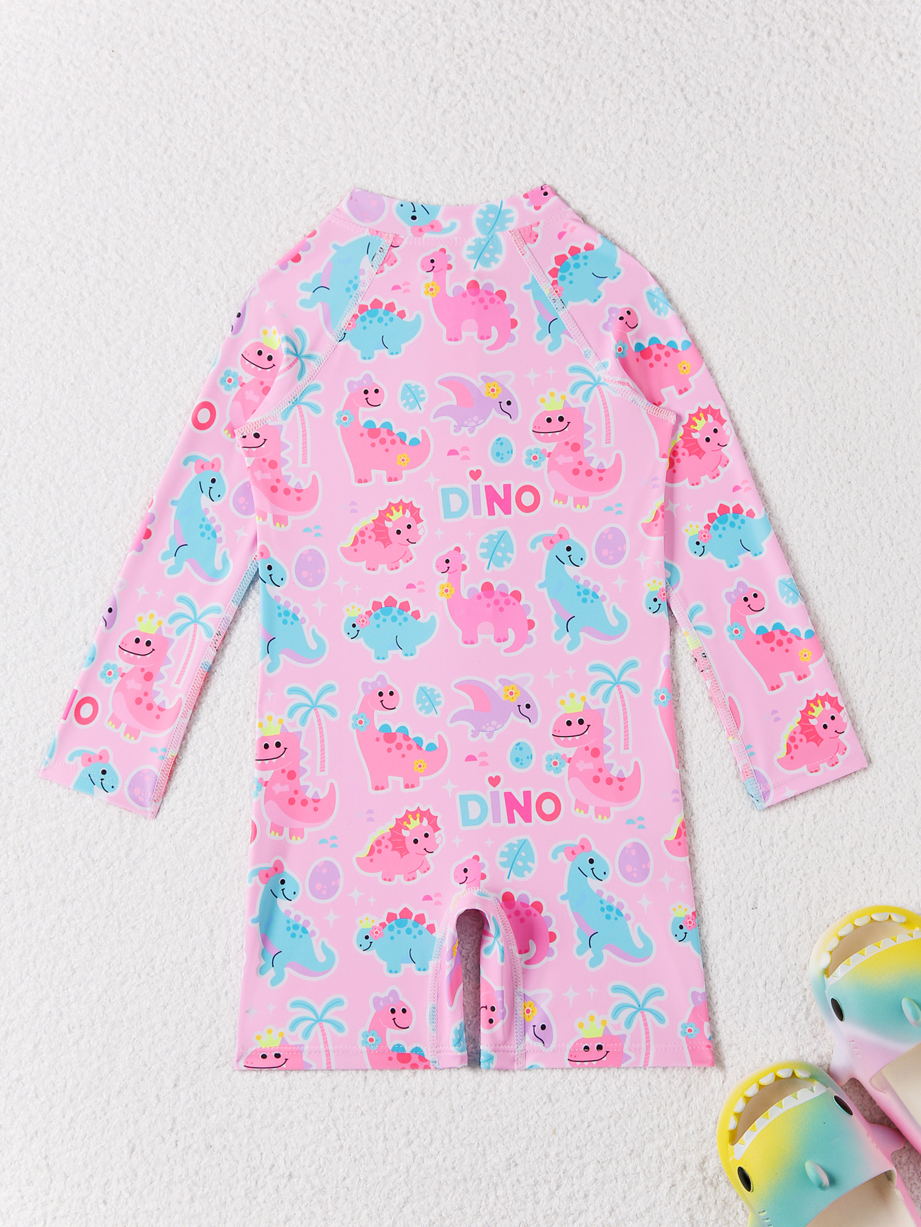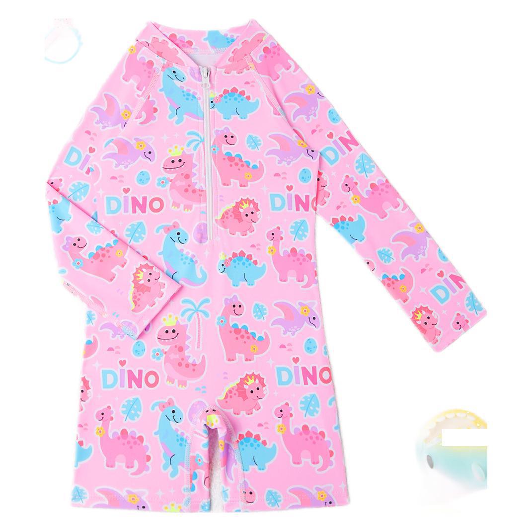 어린이 수영복 소녀 원피스 수영복 핑크 공룡 긴팔 수영복 빅 비치 태양 보호 세트