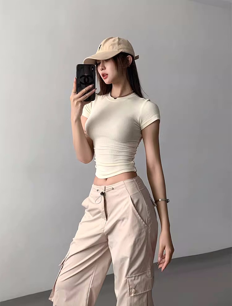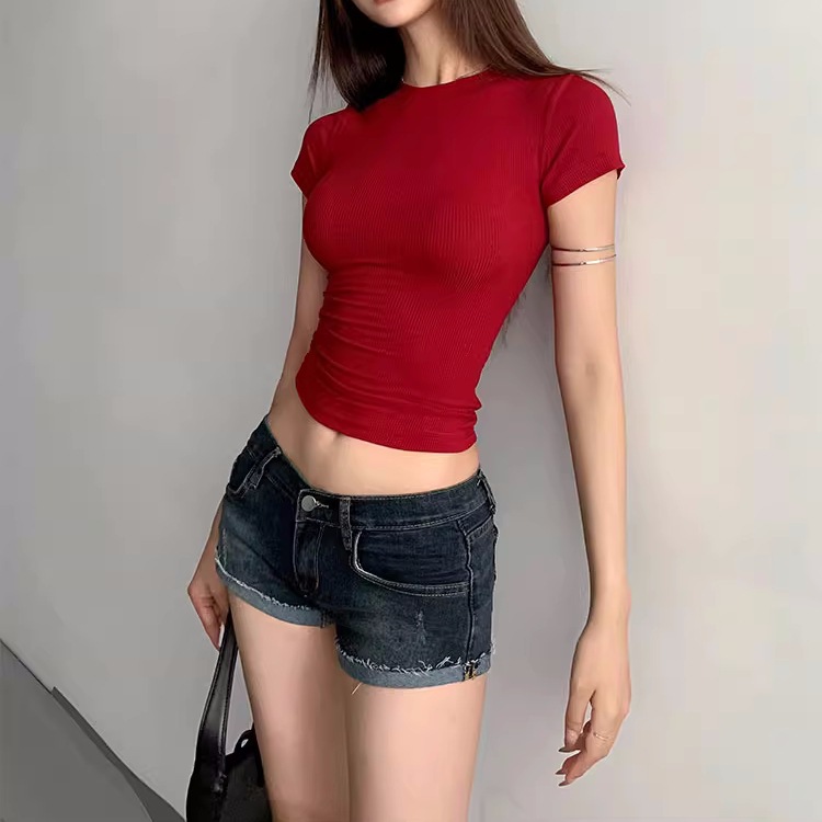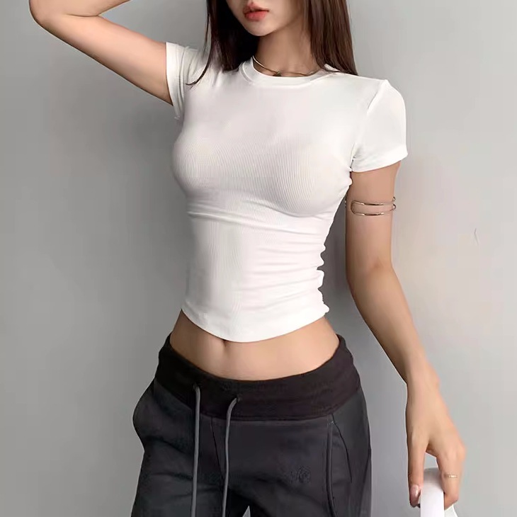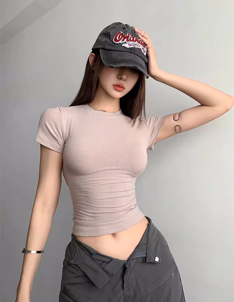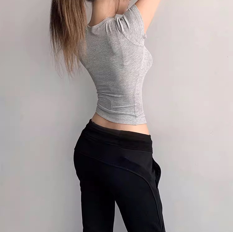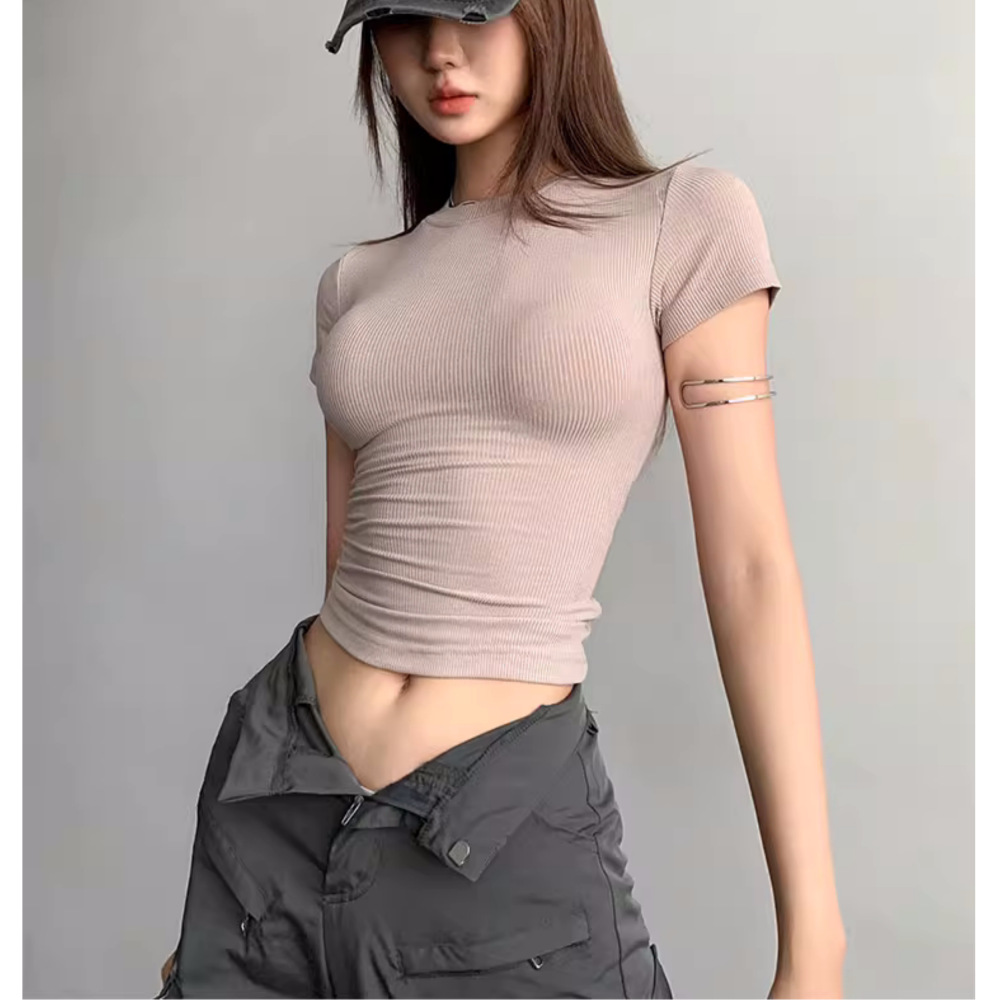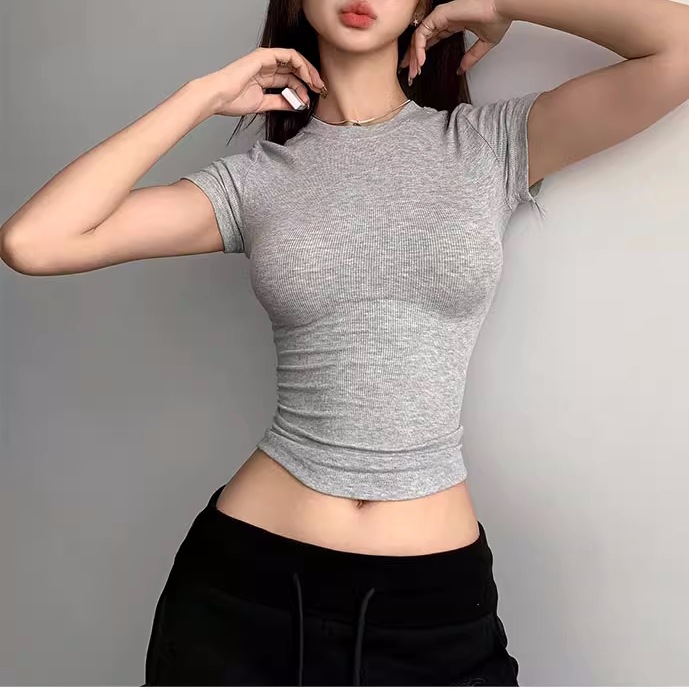 Kardashian 반팔 여성 기본 Bottoming Thread 스포츠 티셔츠 섹시한 슬림 핏 라운드 넥 솔리드 컬러 캐주얼 티셔츠 1433스토어 가기