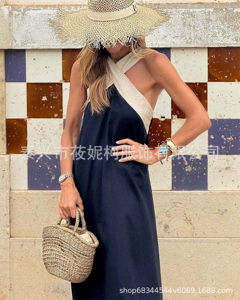 2025 여름 신상품 해외 여성복 아마존 알리익스프레스 수출 반팔 롱 드레스 섹시한 원피스