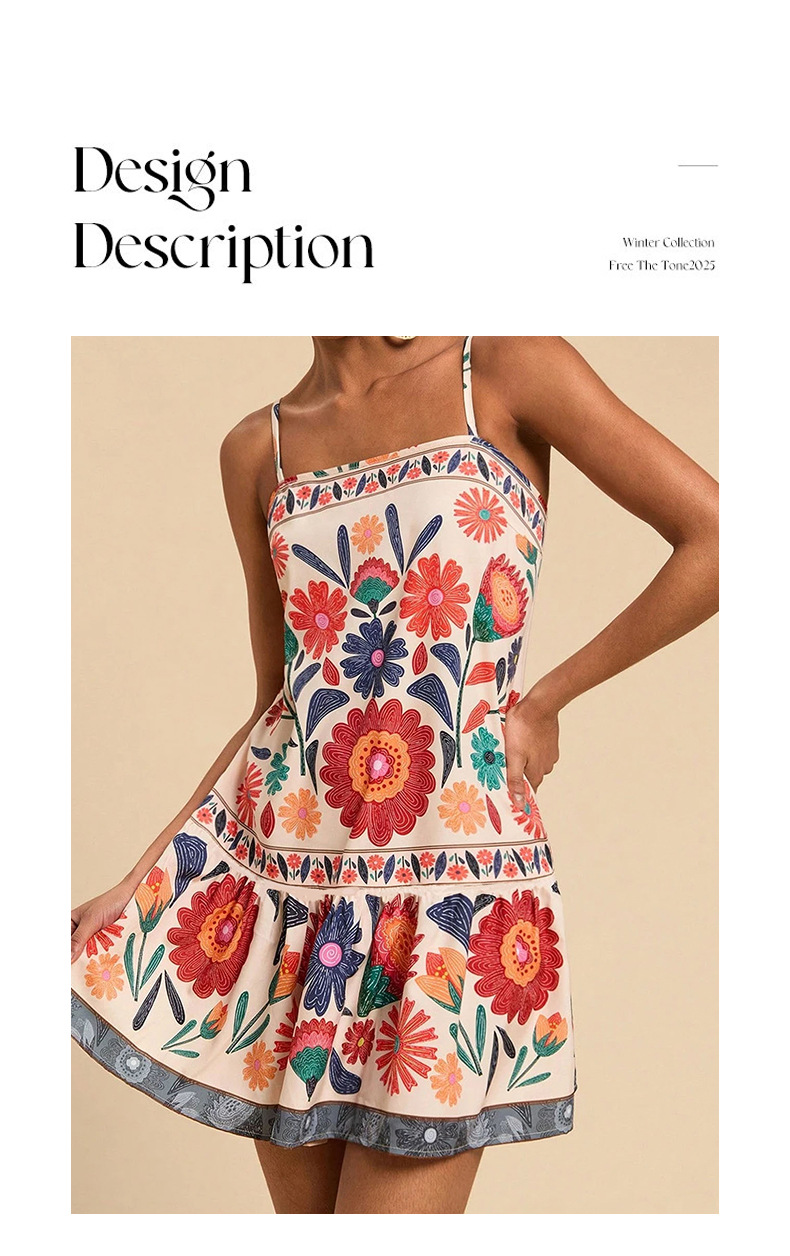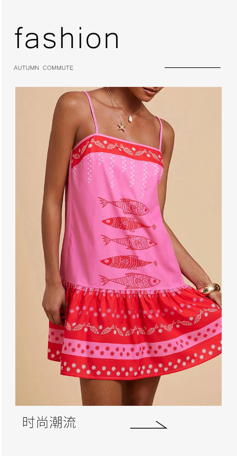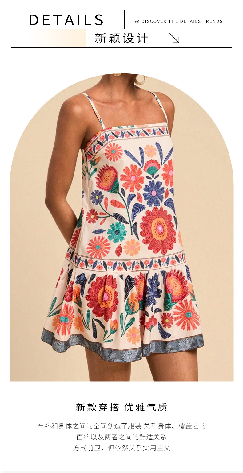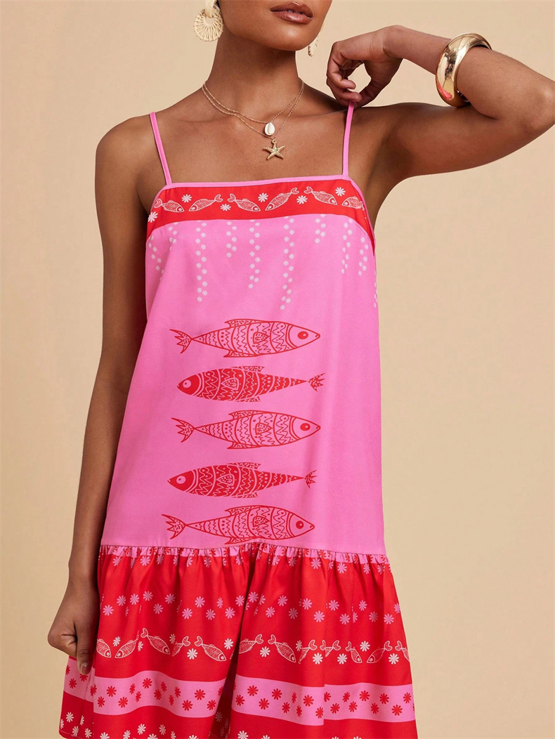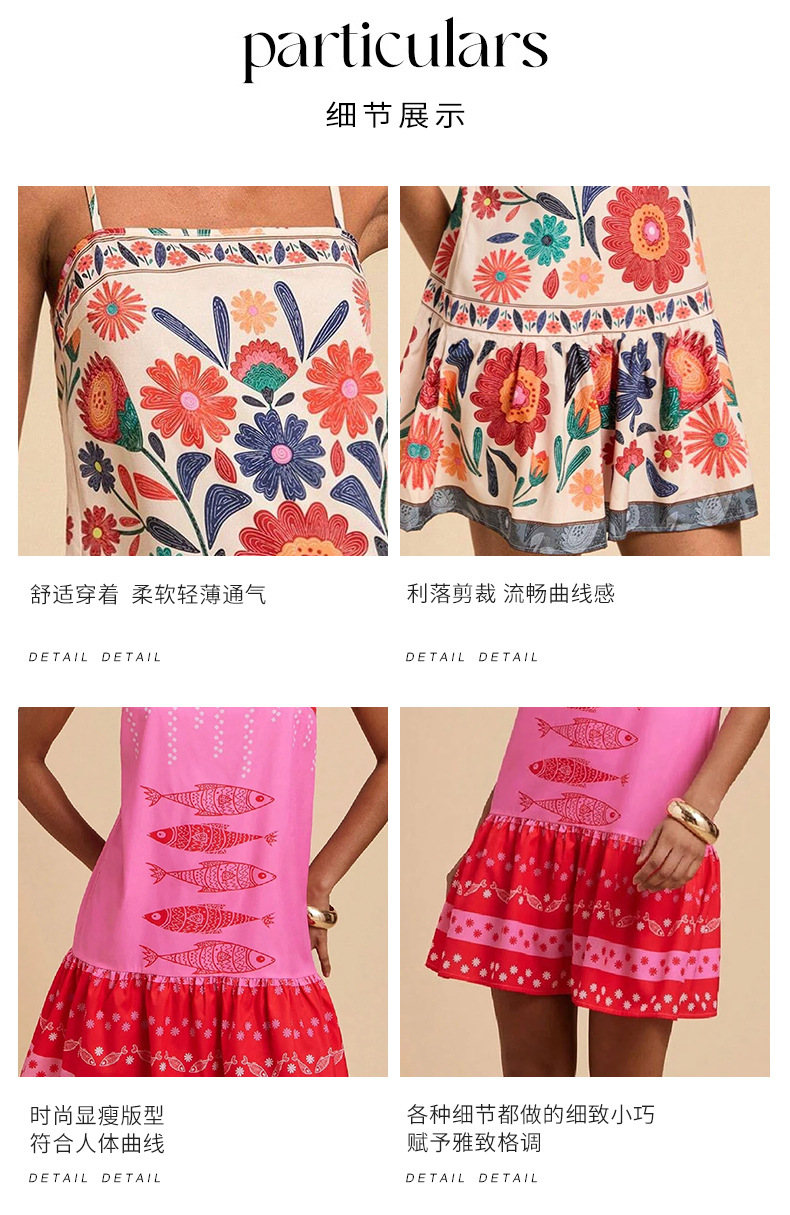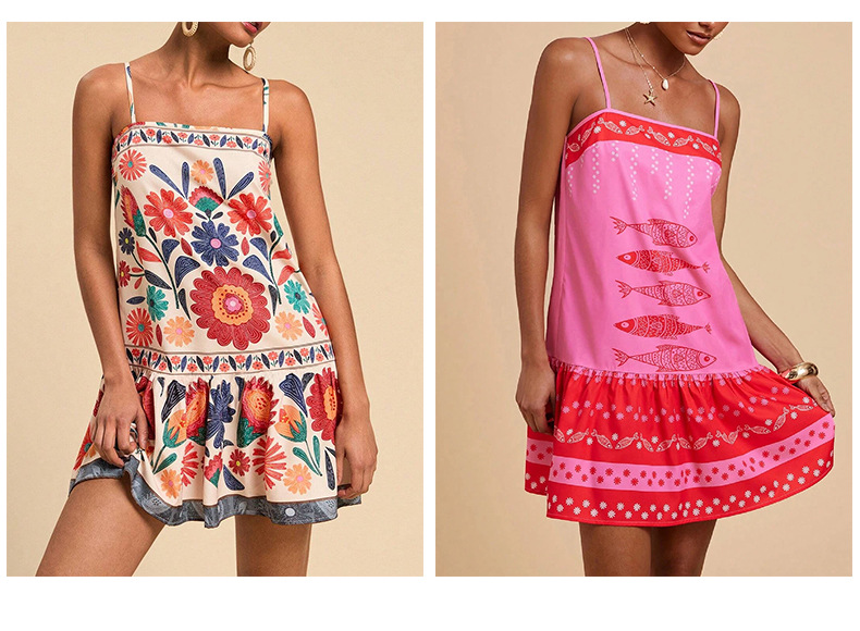 아마존 유럽 및 미국 해외 여성 의류 프린트 보헤미안 스타일의 우아한 서스펜더 휴가 스타일 캐주얼 루즈 드레스