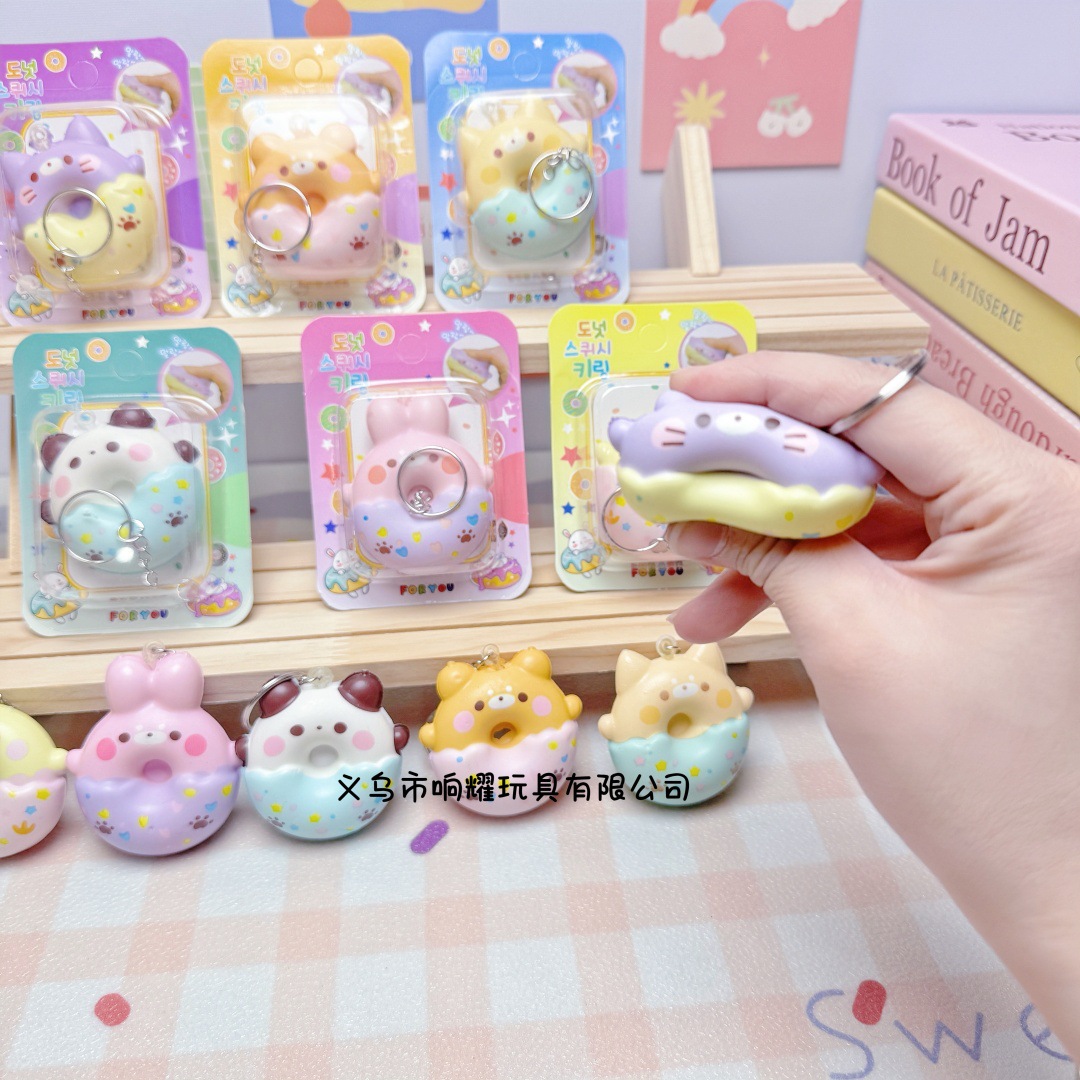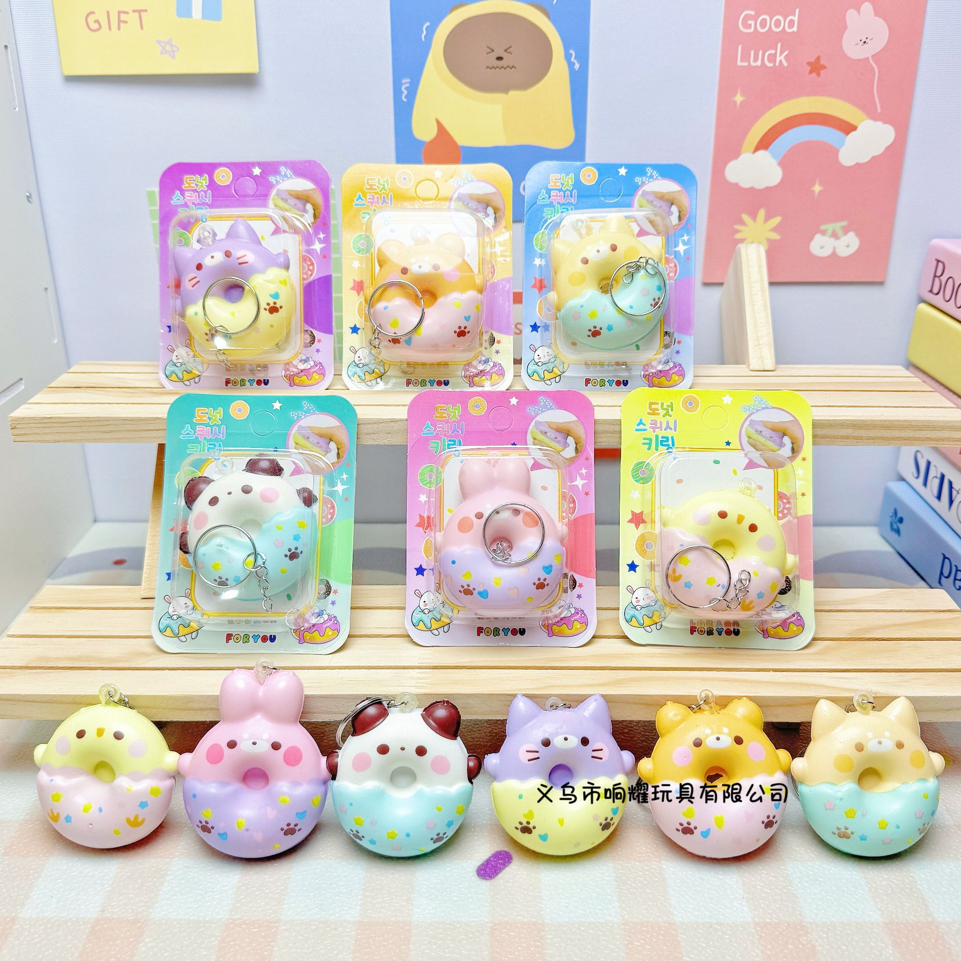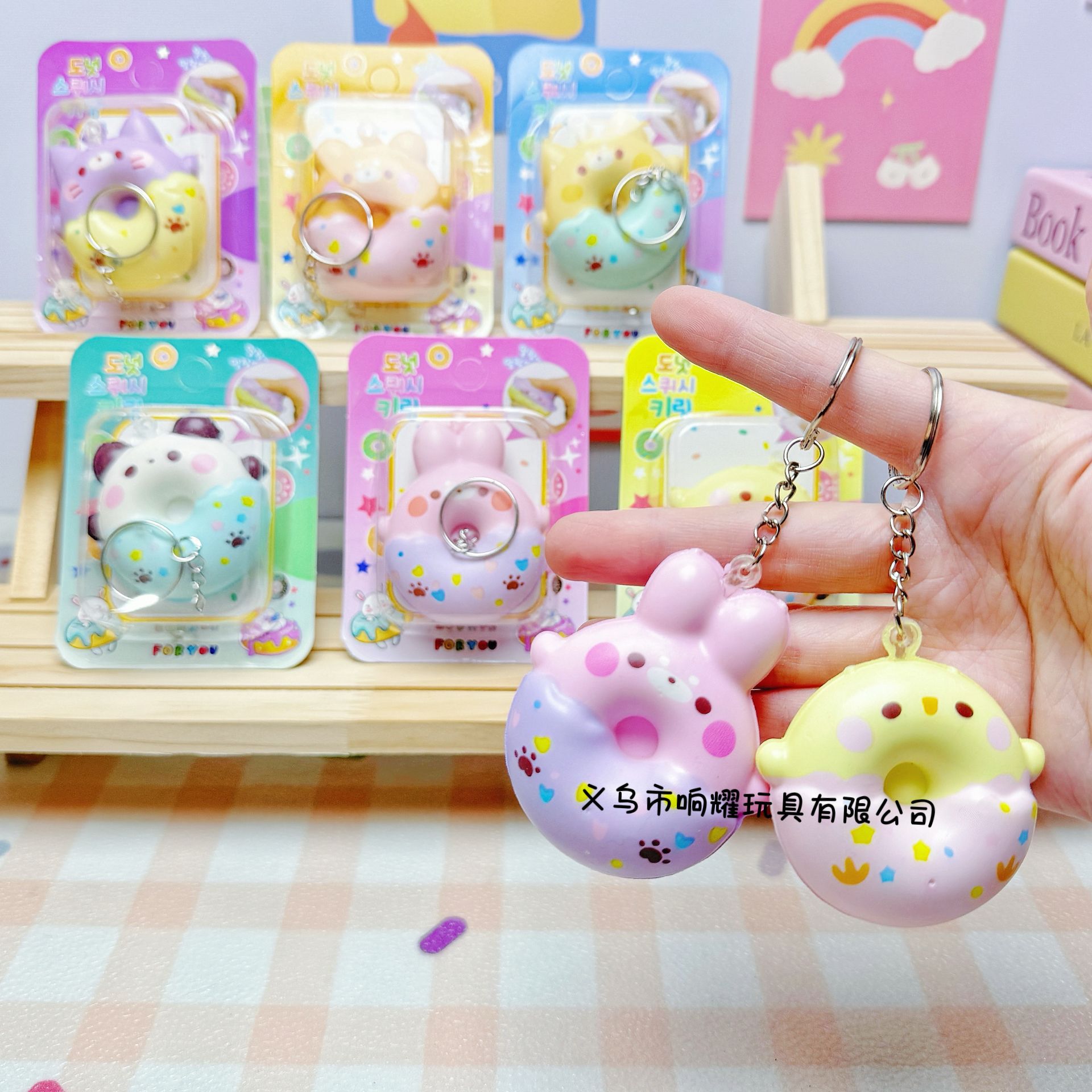 도넛 슬로우 리바운드 벤트 펜던트 귀여운 동물 모양 핀치 음악 키 체인 감압 벤트 어린이 장난감스토어 가기