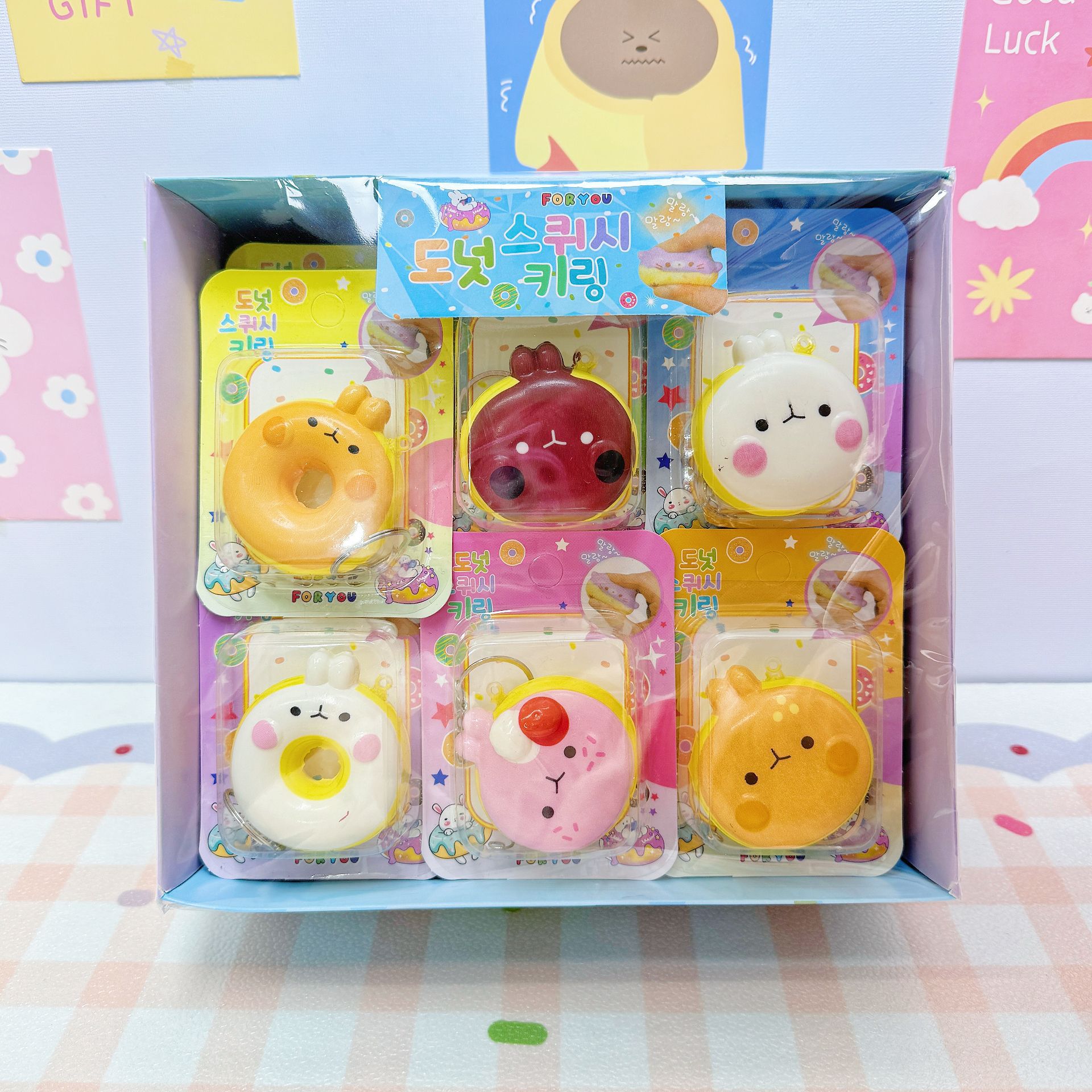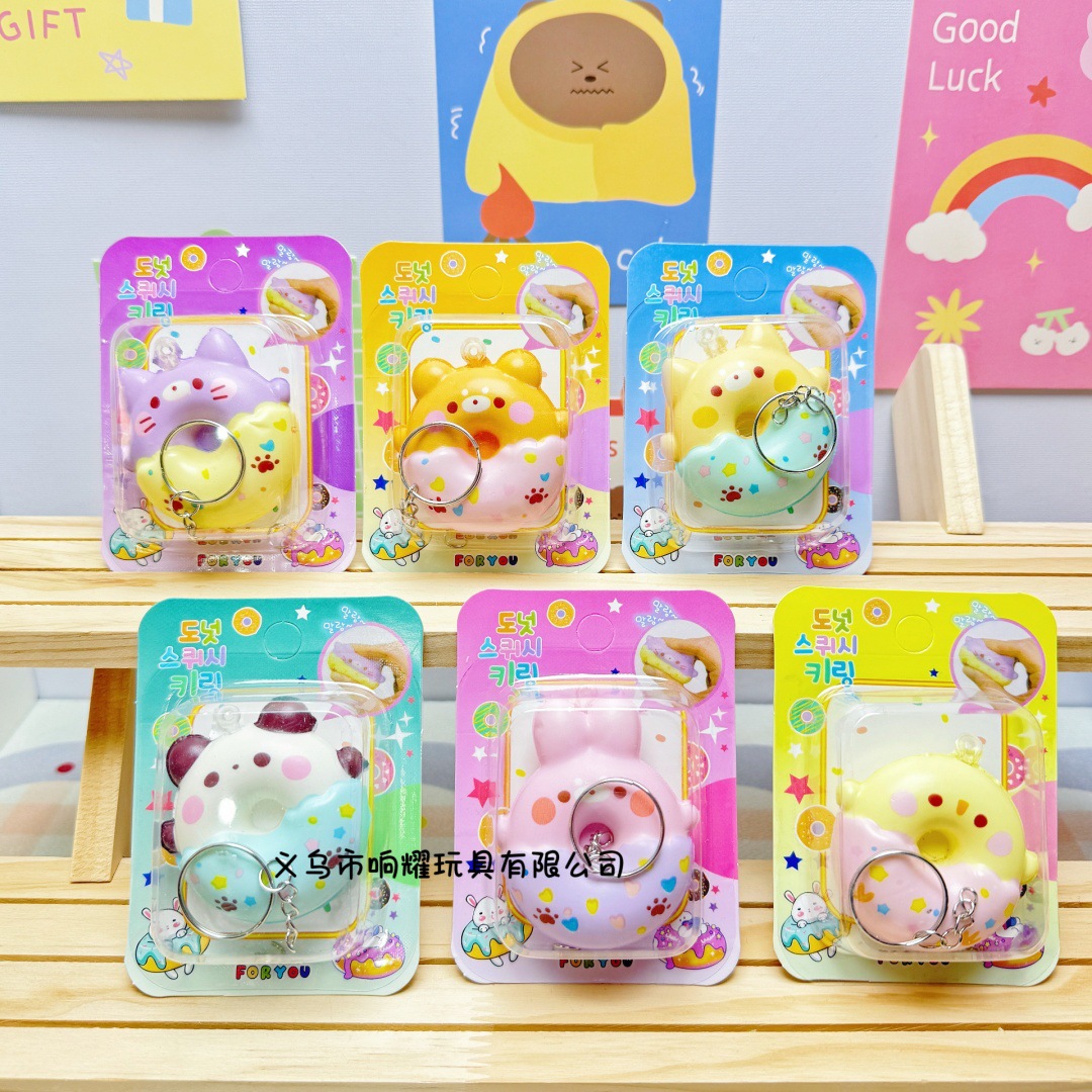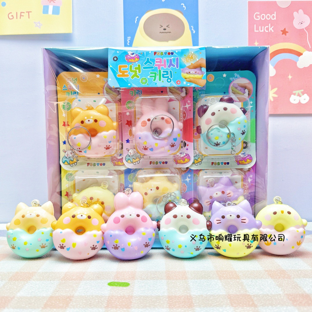 도넛 슬로우 리바운드 벤트 펜던트 귀여운 동물 모양 핀치 음악 키 체인 감압 벤트 어린이 장난감스토어 가기