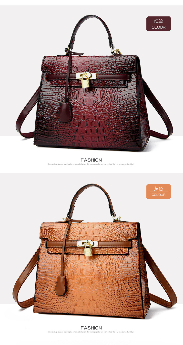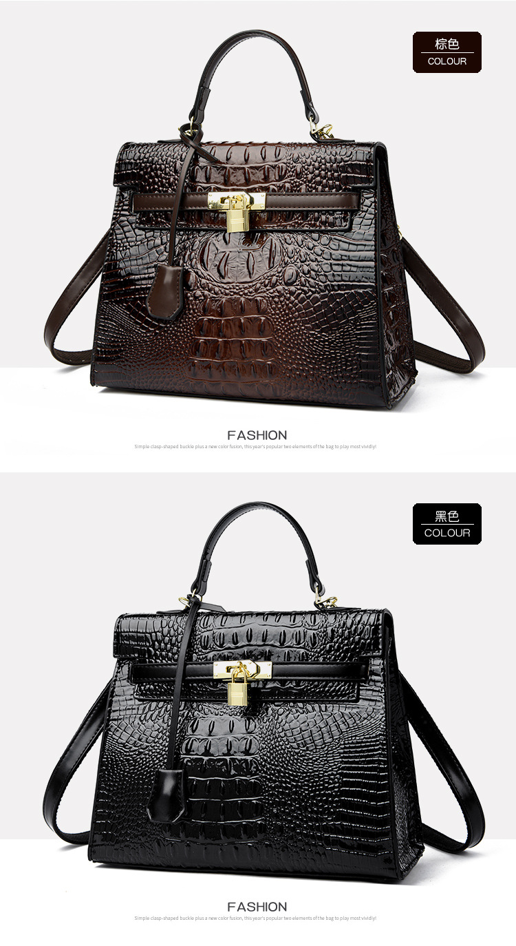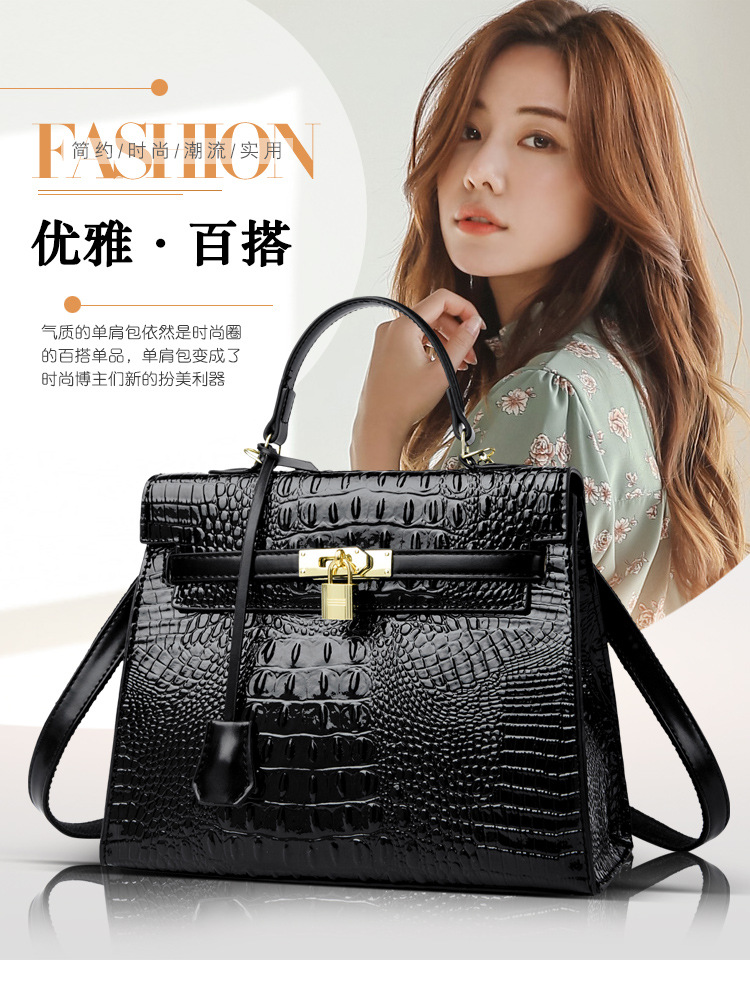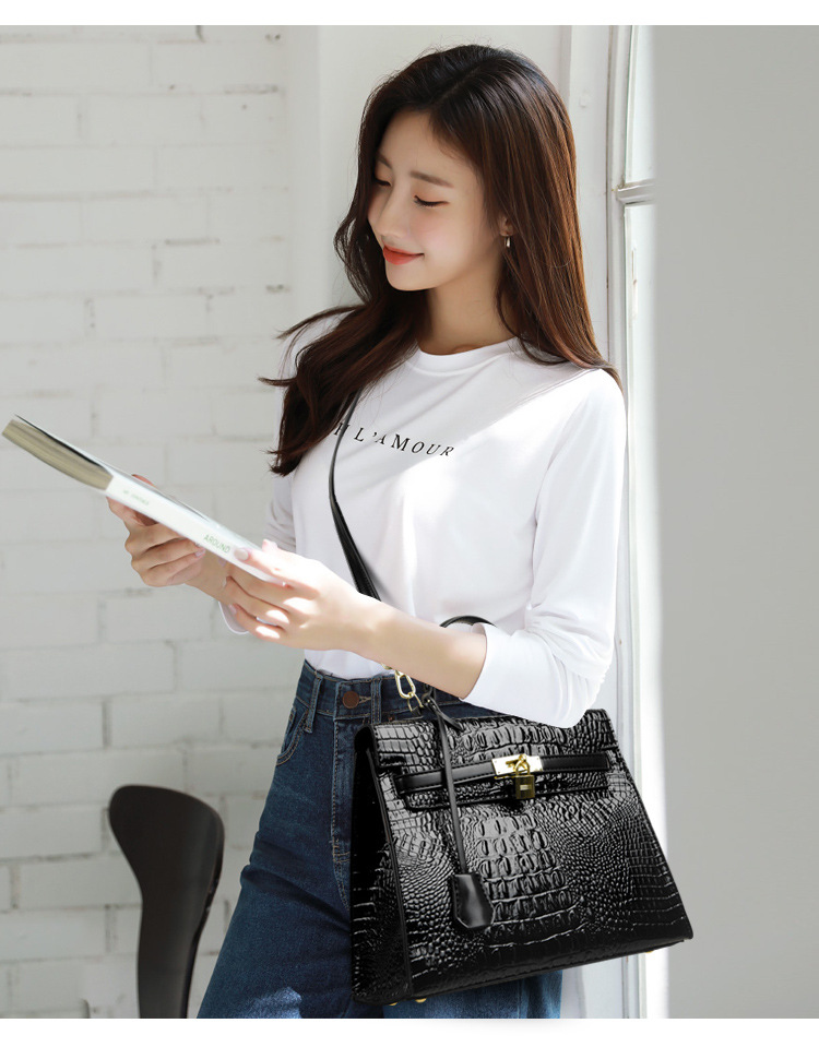 대외 무역 여성 가방 2025 새로운 도착 악어 패턴 플래티넘 여성 가방 패션 핸드백 어깨 가방 켈리 가방 크로스 바디 백