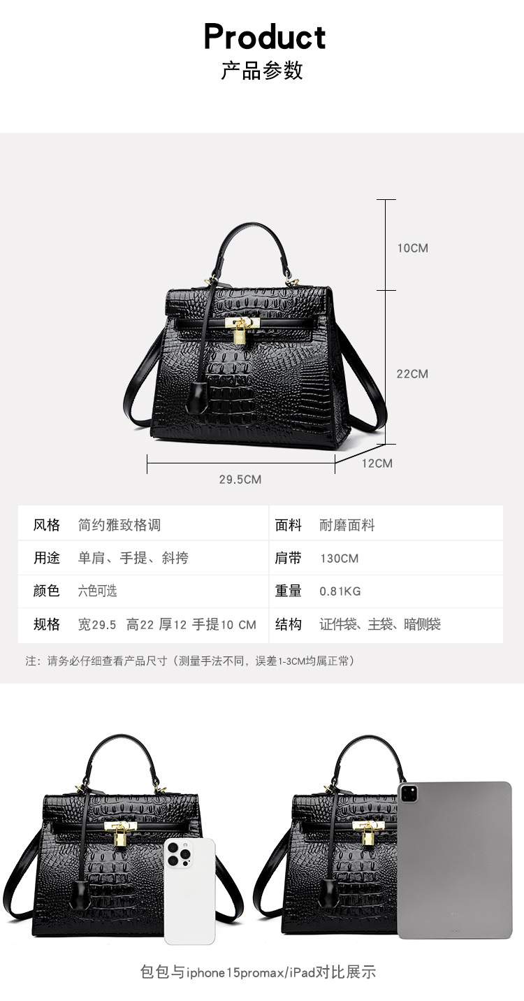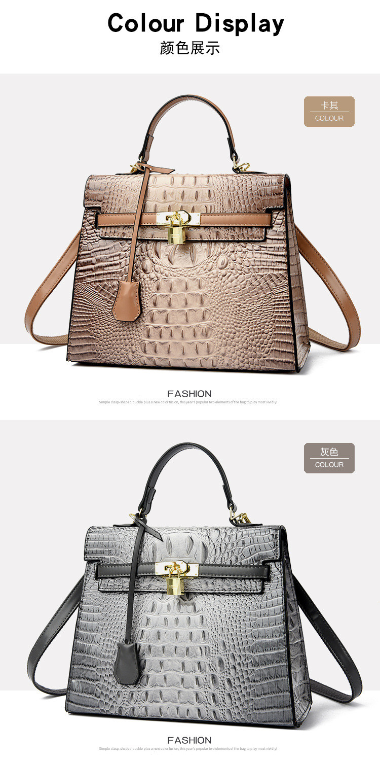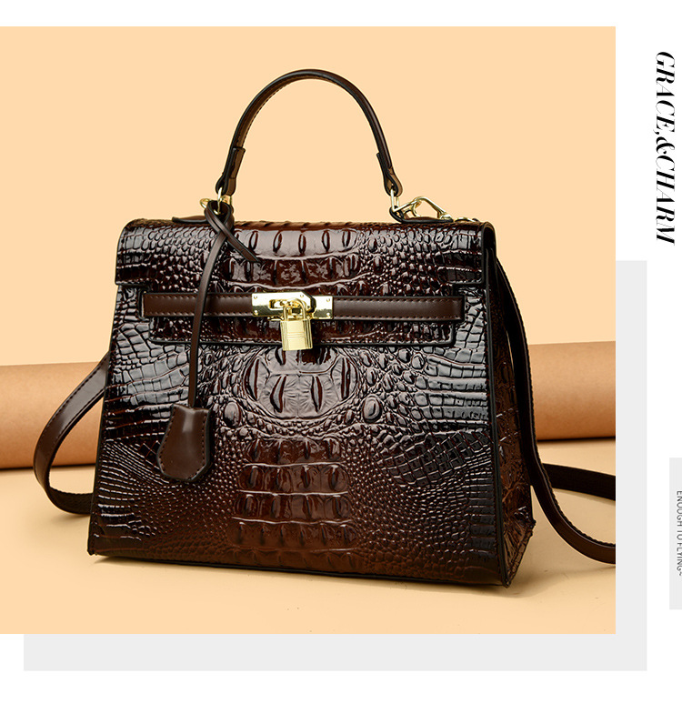 대외 무역 여성 가방 2025 새로운 도착 악어 패턴 플래티넘 여성 가방 패션 핸드백 어깨 가방 켈리 가방 크로스 바디 백스토어 가기