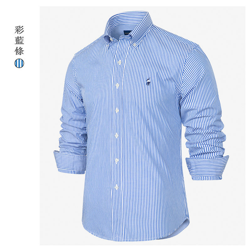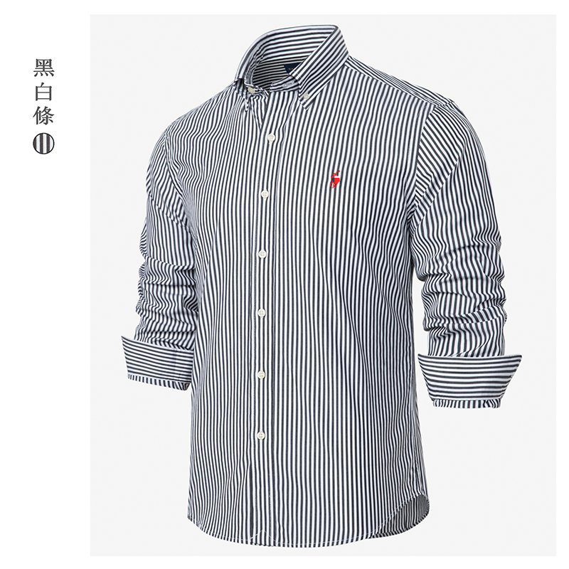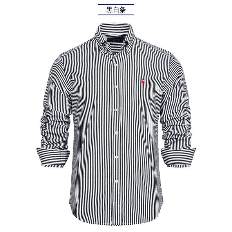 동일한 RL 러프 포니 로고 대외 무역 남성용 자수 스트라이프 긴팔 셔츠 라펠 티셔츠 폴로 셔츠 다용도