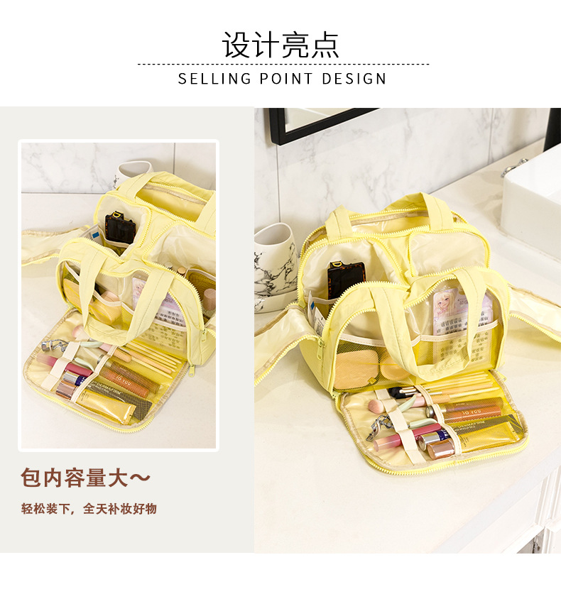 새로운 패션 간단한 화장품 가방 푹신한 파티션 대용량 하이 엔드 여행 휴대용 워시 보관 가방
