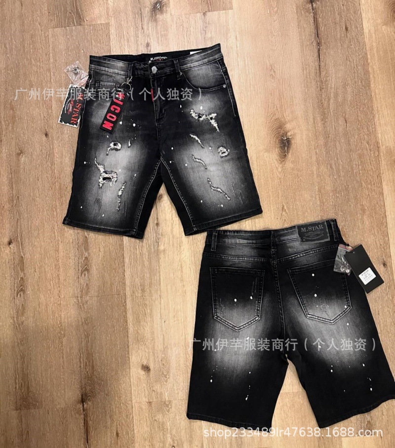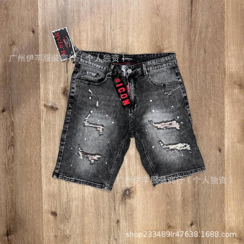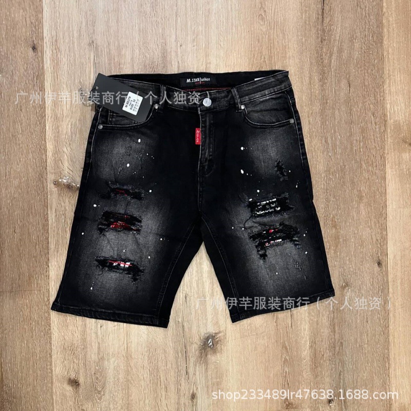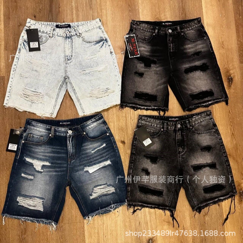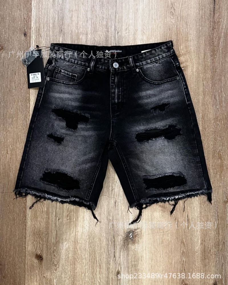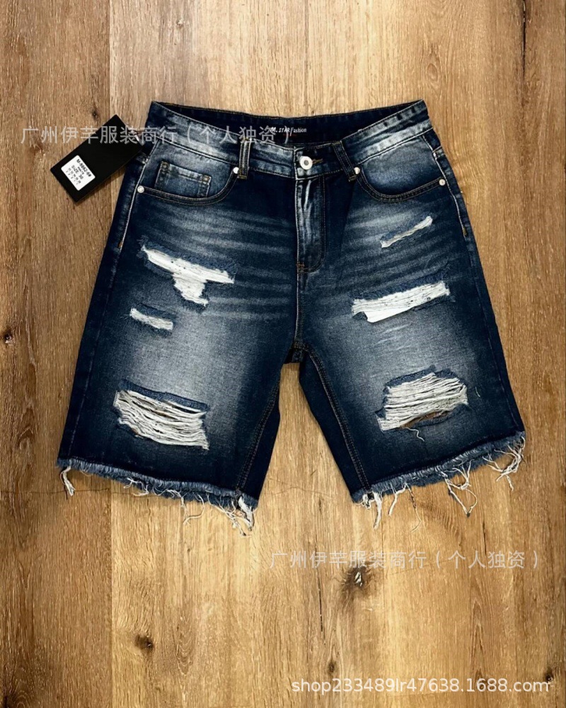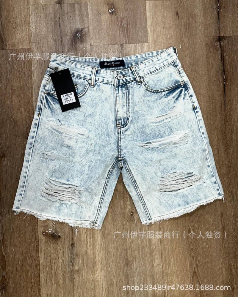 남성용 청바지 반바지 남성용 한국식 슬림핏 데님 반바지 트렌디한 팬츠 리핑 청바지스토어 가기