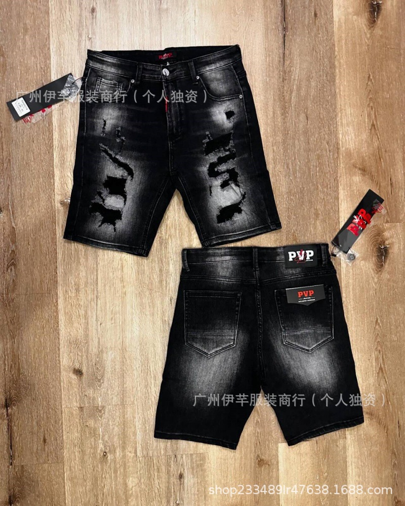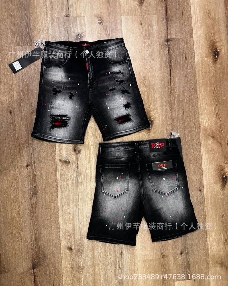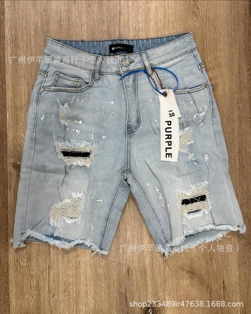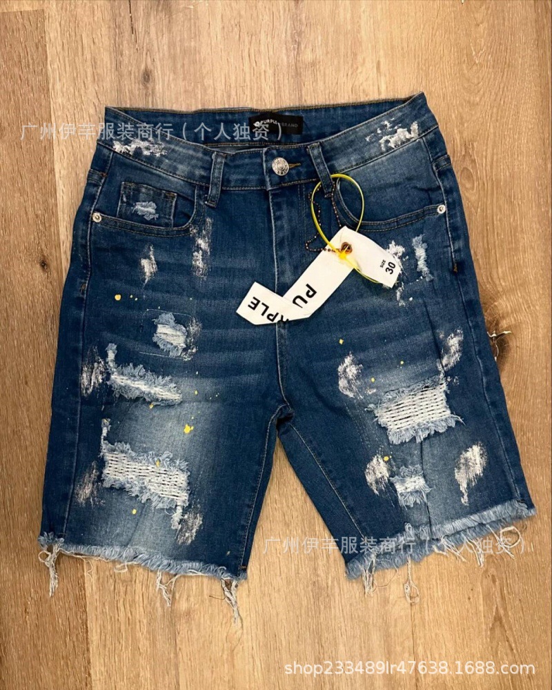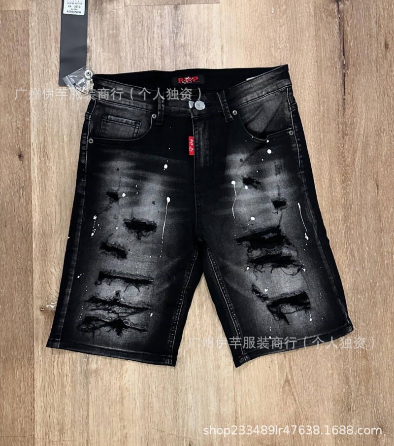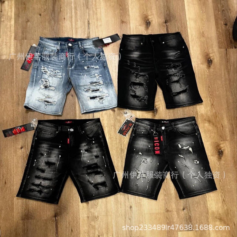 남성용 청바지 반바지 남성용 한국식 슬림핏 데님 반바지 트렌디한 팬츠 리핑 청바지스토어 가기