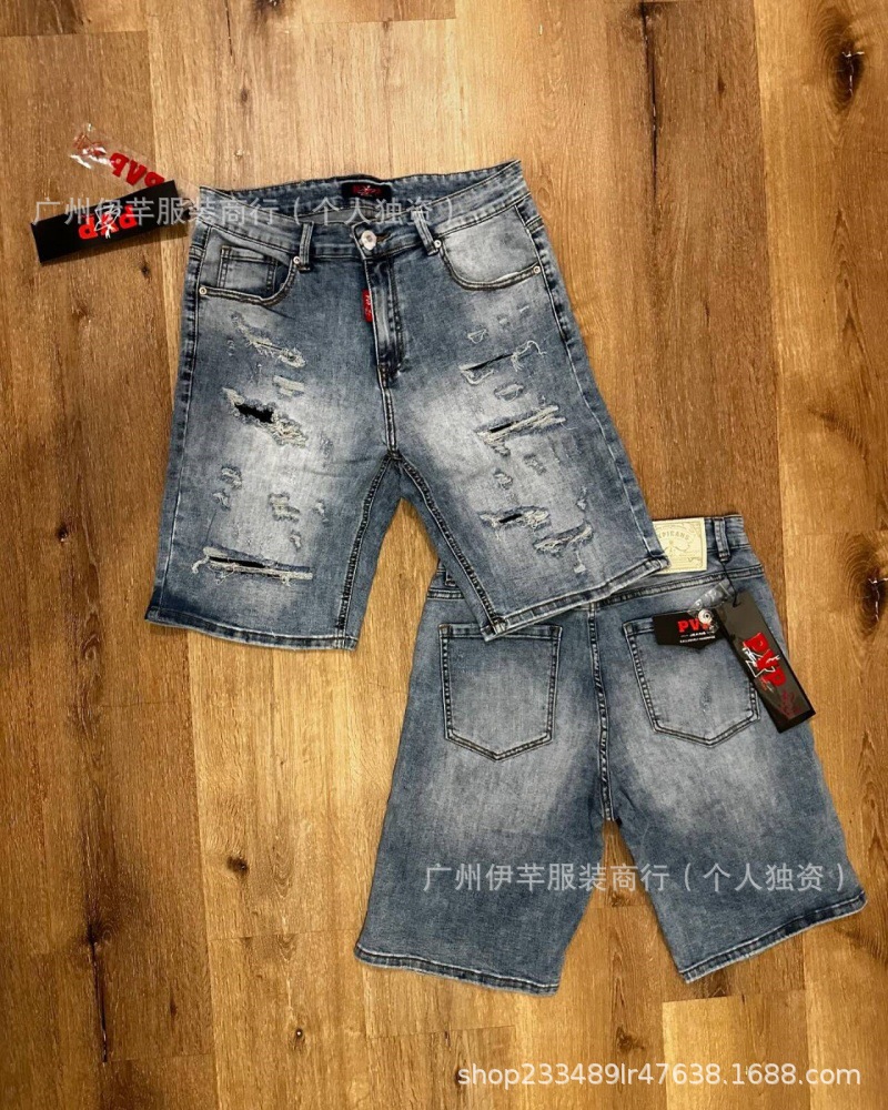 남성용 청바지 반바지 남성용 한국식 슬림핏 데님 반바지 트렌디한 팬츠 리핑 청바지