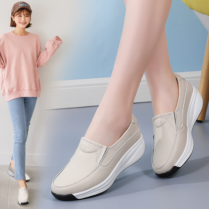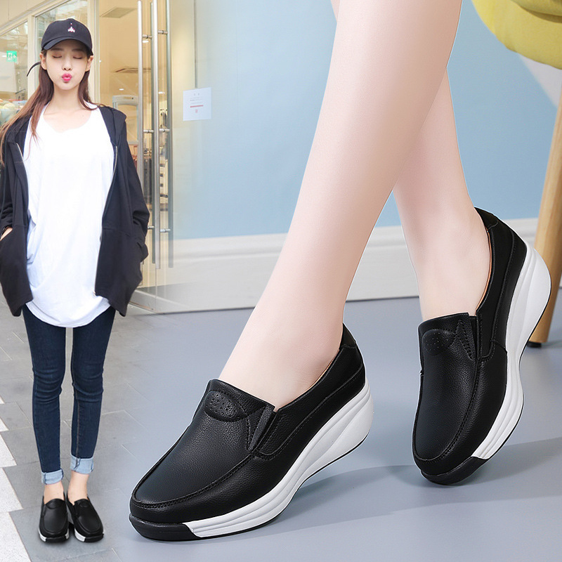 국경 2023 가을 새 운동화 여성 한국식 두꺼운 밑창 흔들 신발 여성 플러스 사이즈 쐐기 캐주얼 엄마 신발스토어 가기