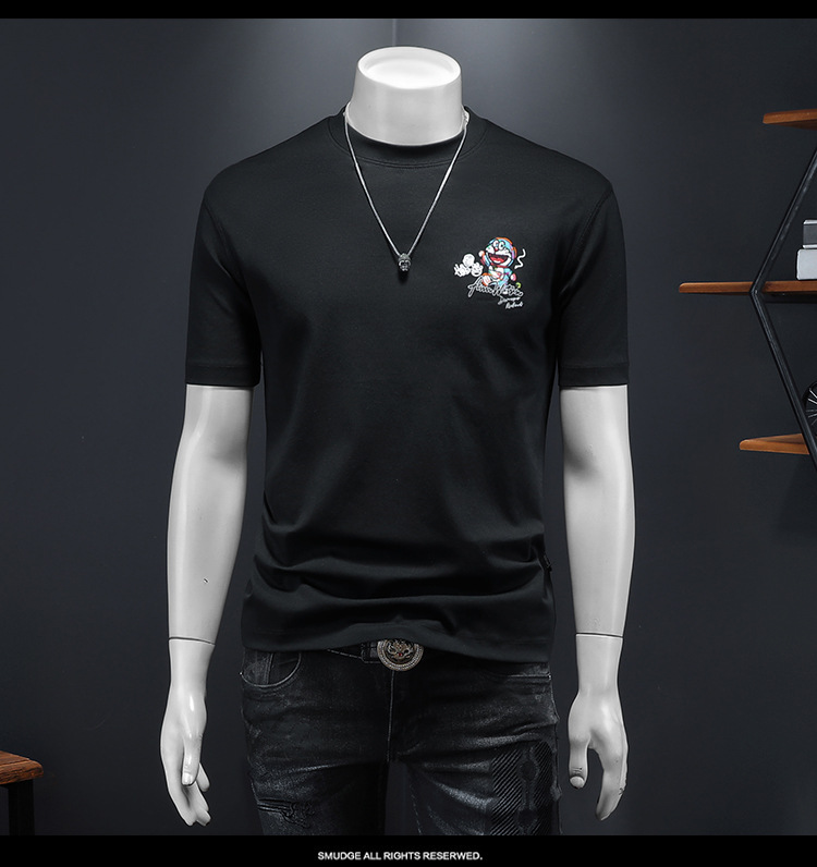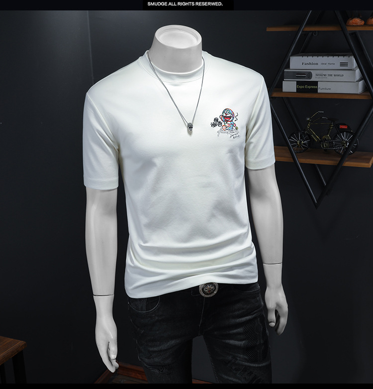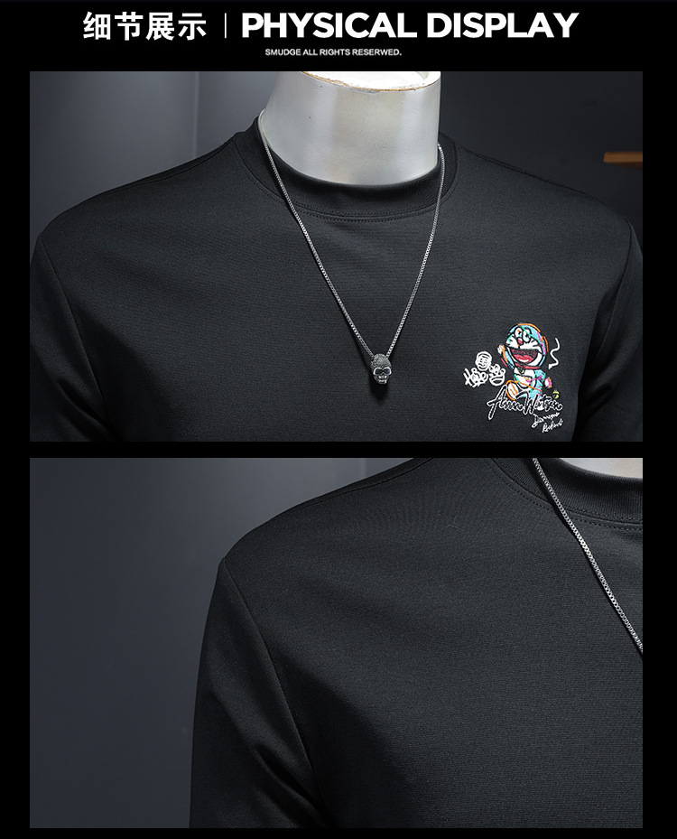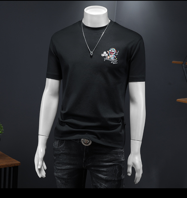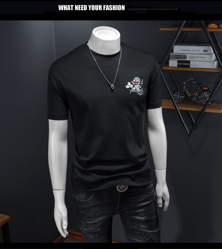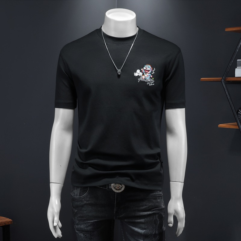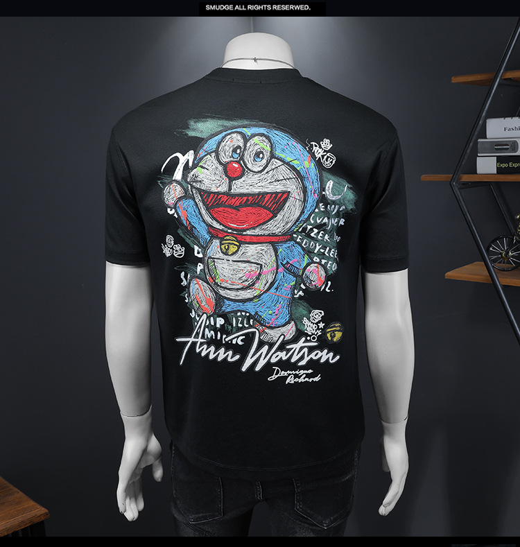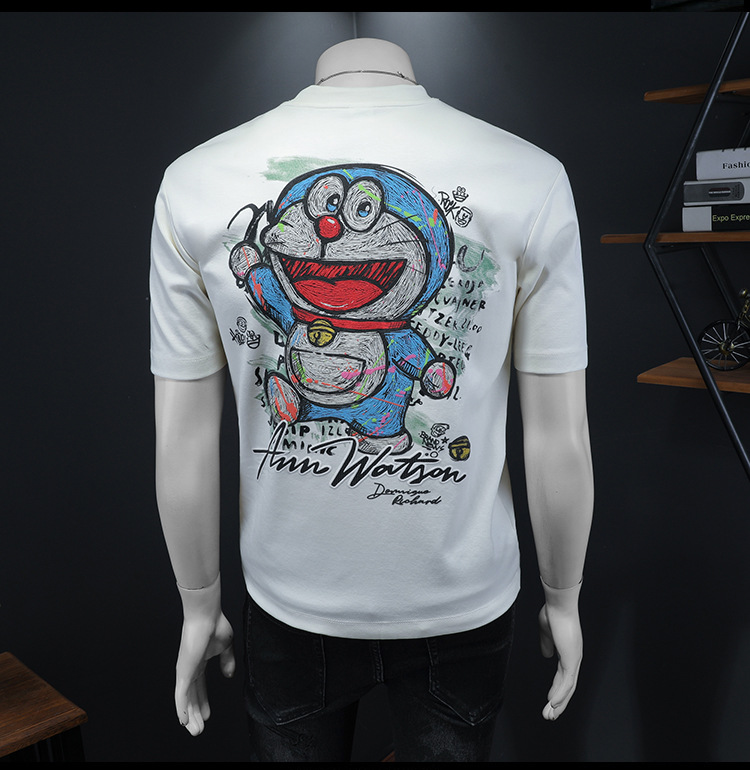 유럽 2025 여름 새로운 남성 반팔 티셔츠 만화 트렌디 라운드 넥 캐주얼 플러스 사이즈 반소매 탑