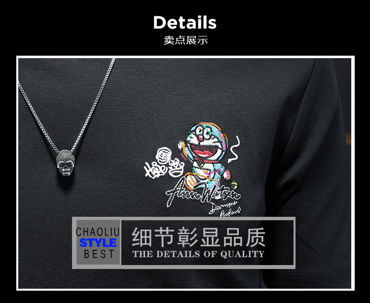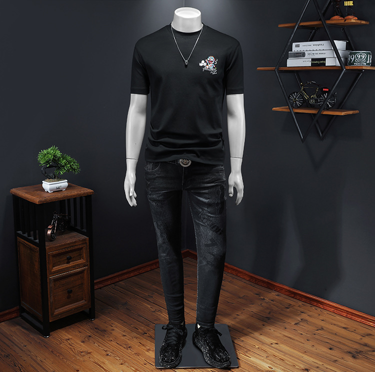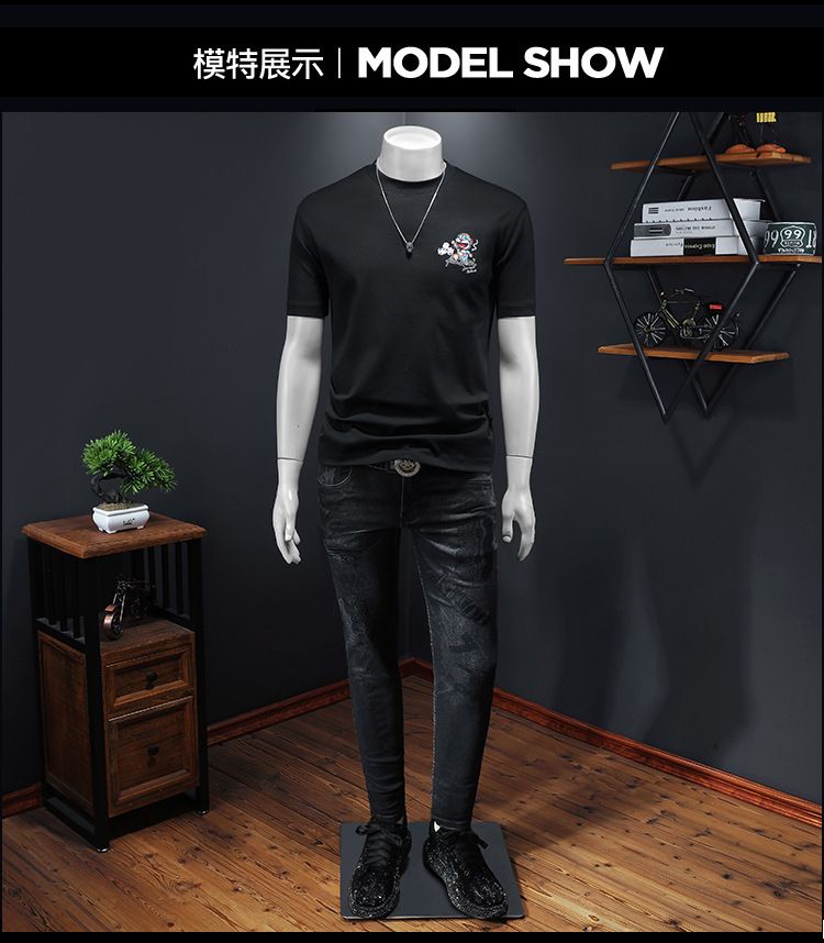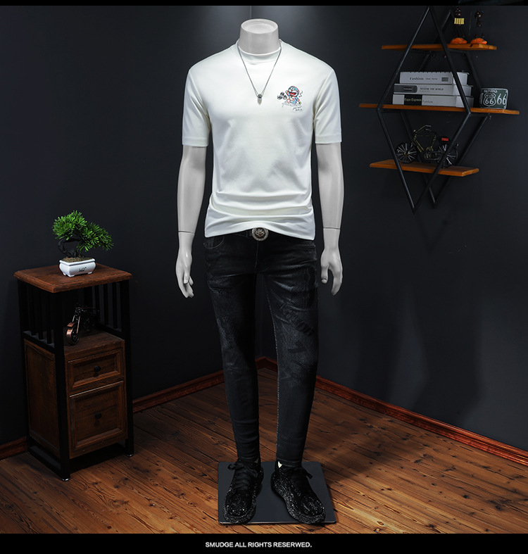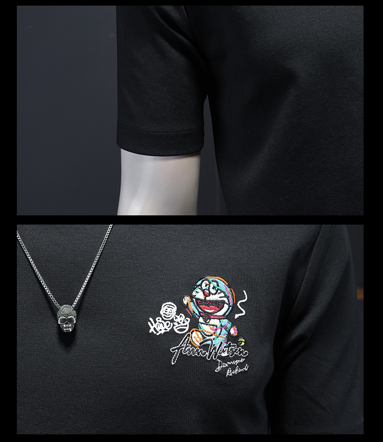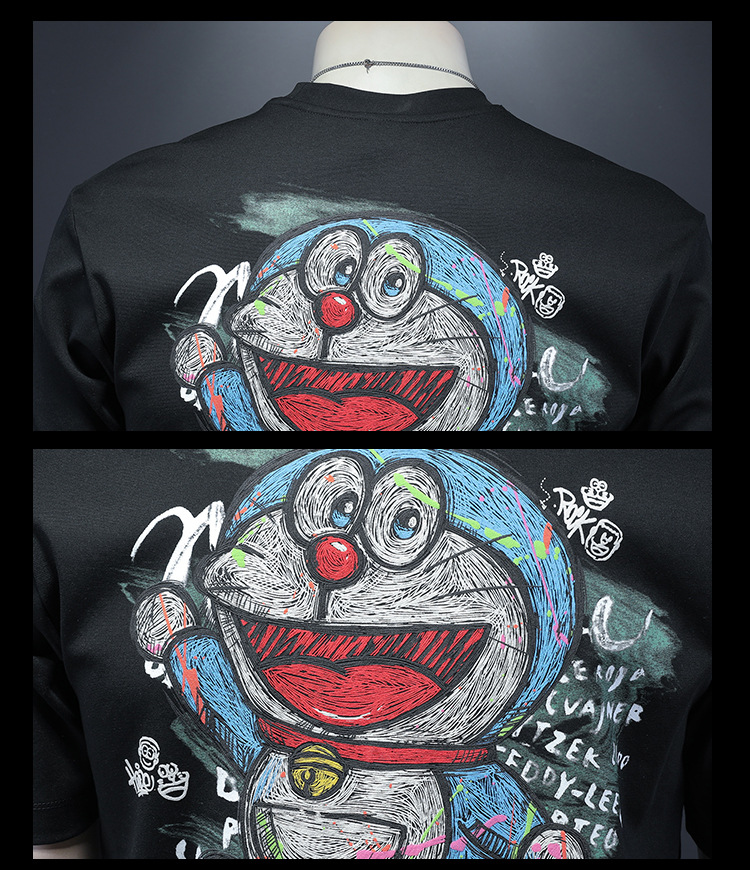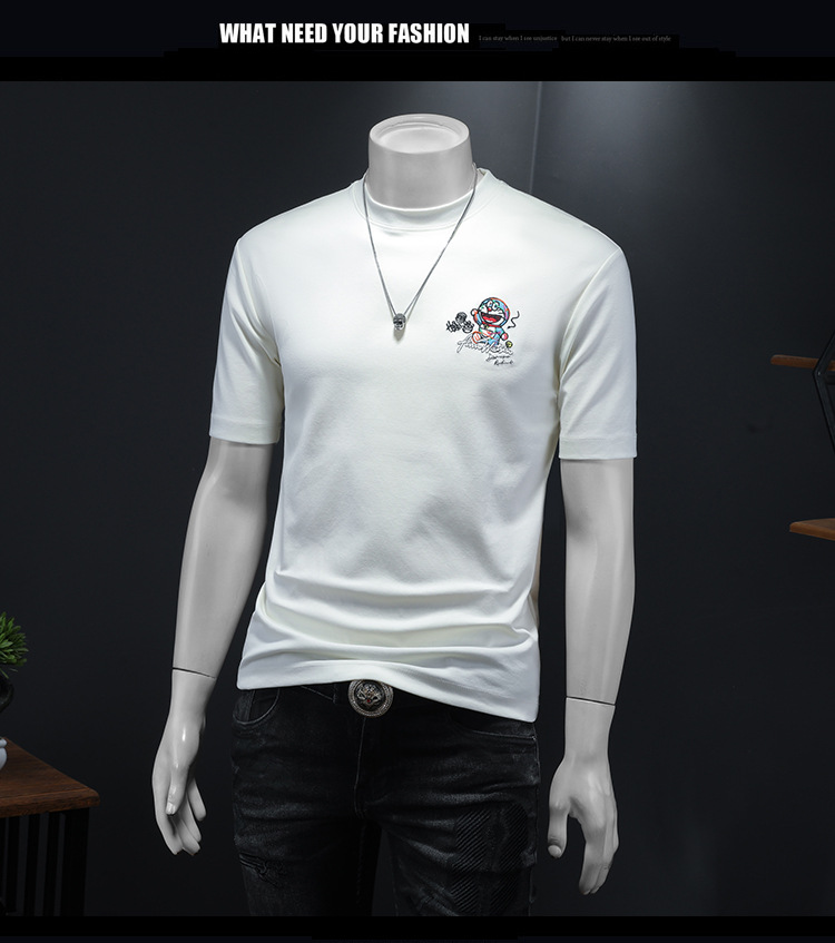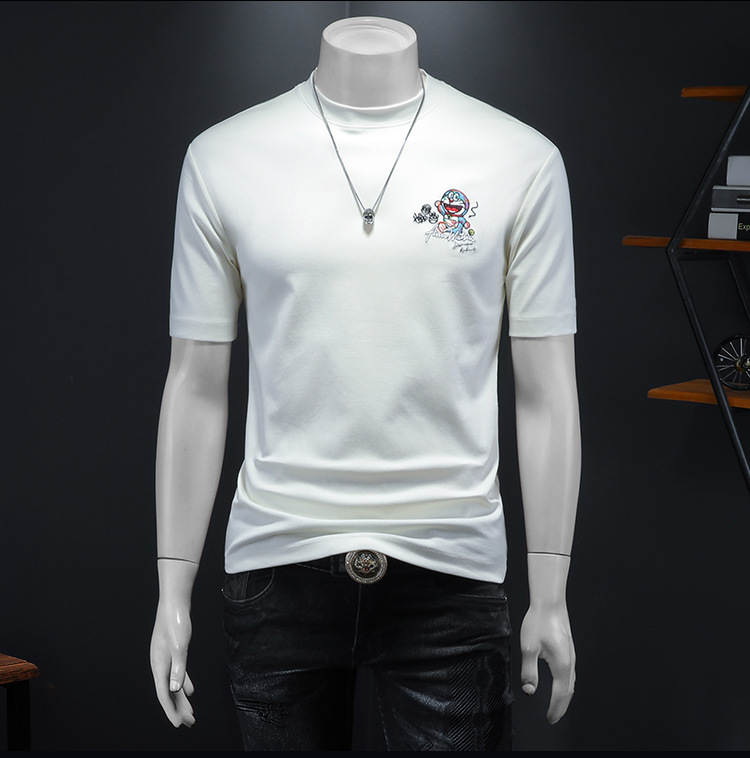 유럽 2025 여름 새로운 남성 반팔 티셔츠 만화 트렌디 라운드 넥 캐주얼 플러스 사이즈 반소매 탑