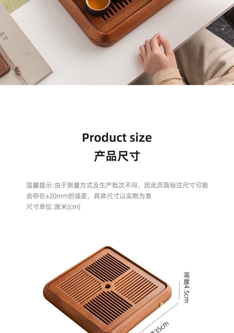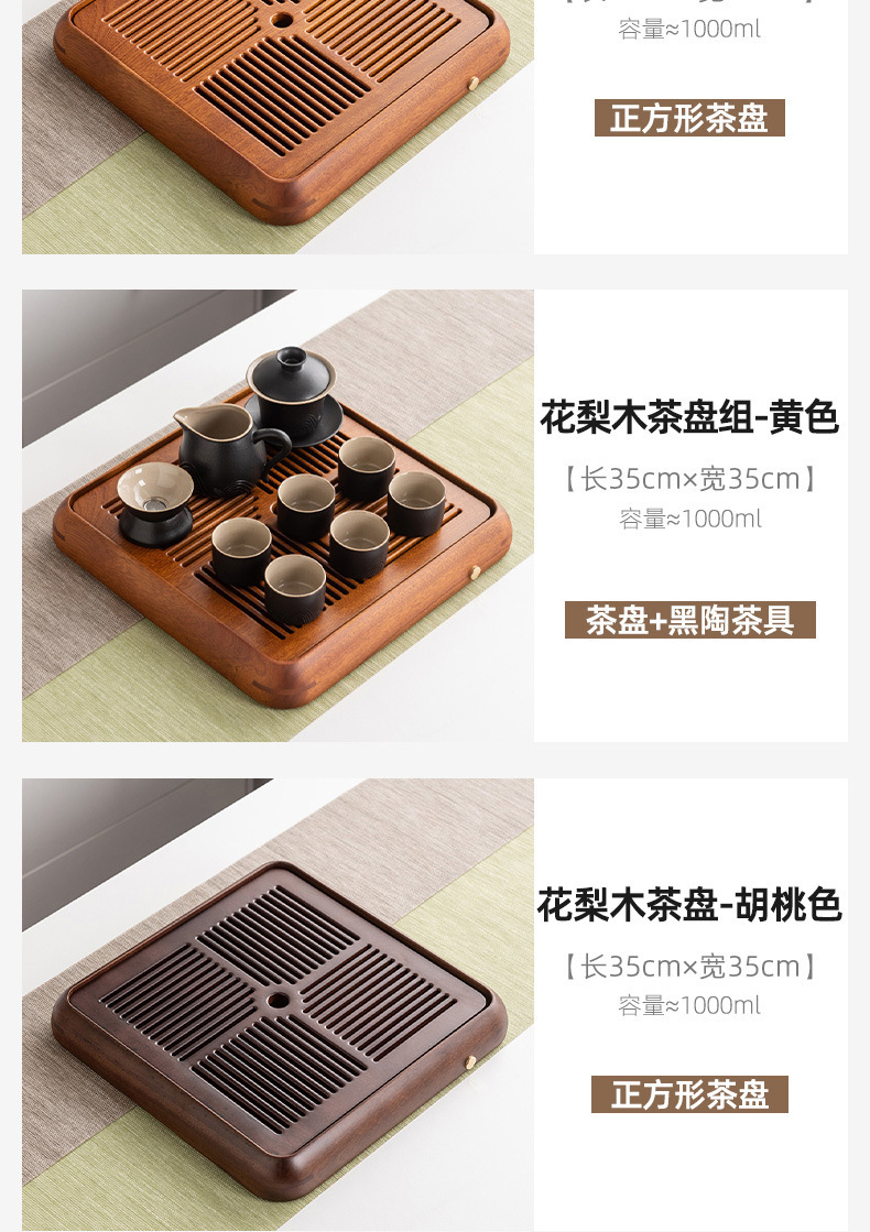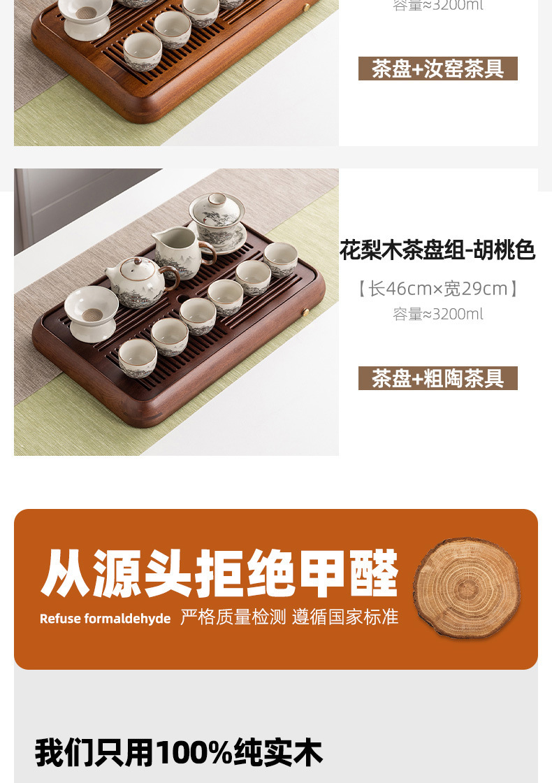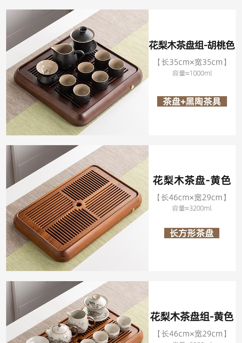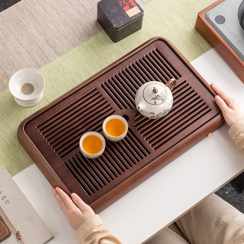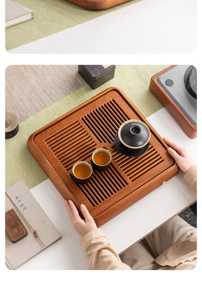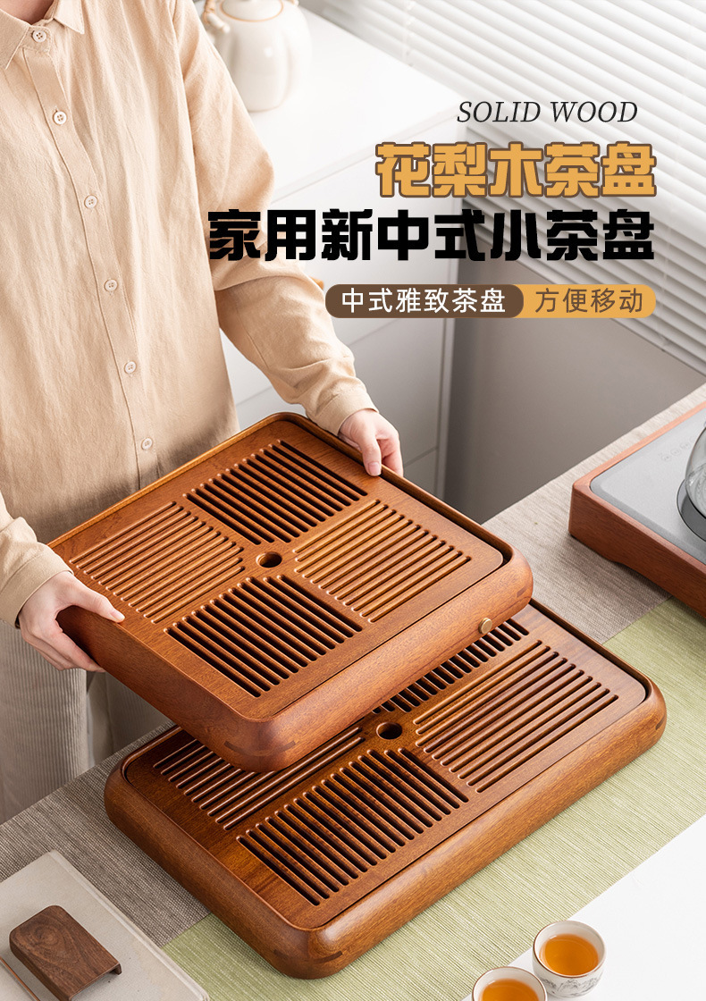 차 트레이 가정용 장미 나무 물 저장 이중 목적 중국 차 쿵푸 차 세트 차 트레이 단단한 나무 건조 테이블