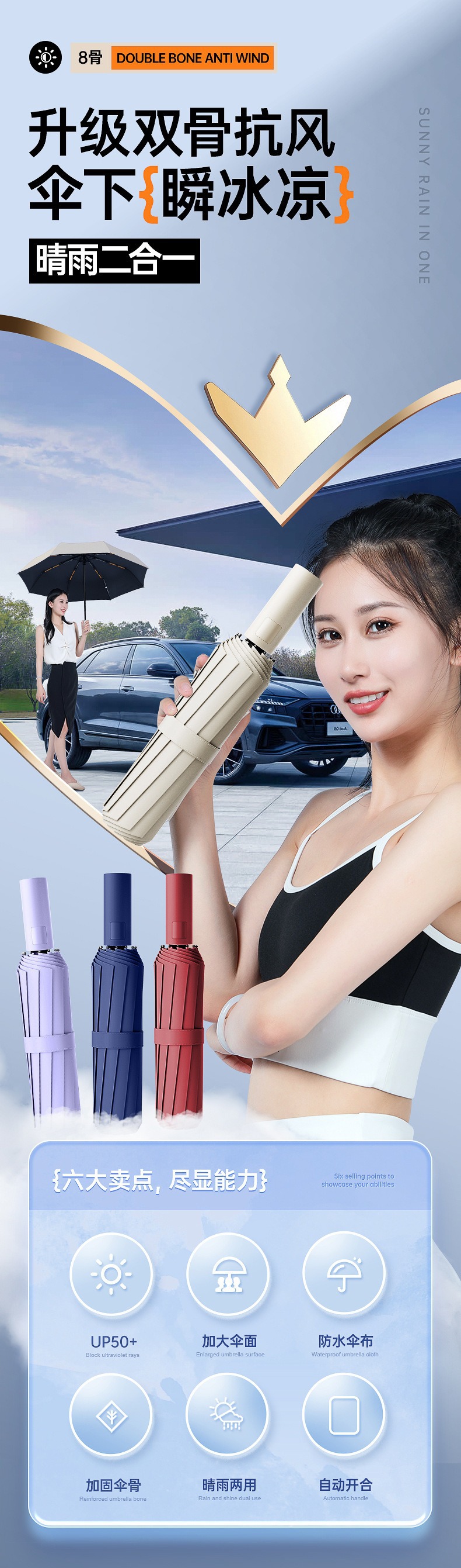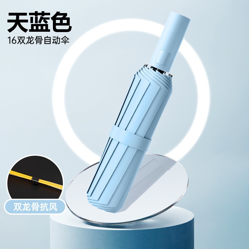 16-뼈 자동 우산 접히는 우산 햇빛 더블 드래곤 뼈 반 폭풍 강화 써니 우산 맞춤 로고 선 스크린 우산