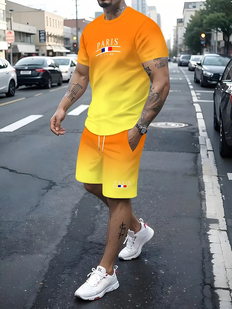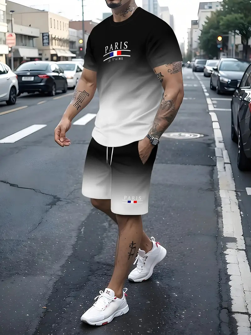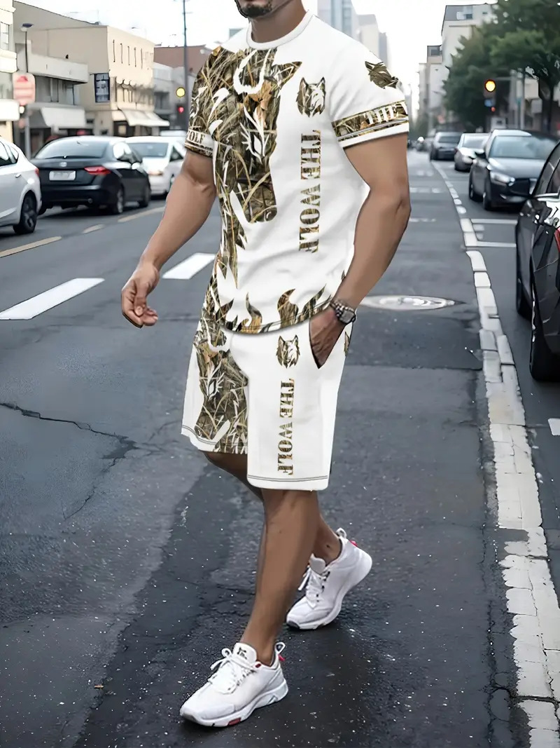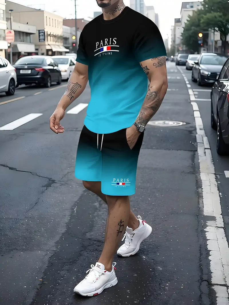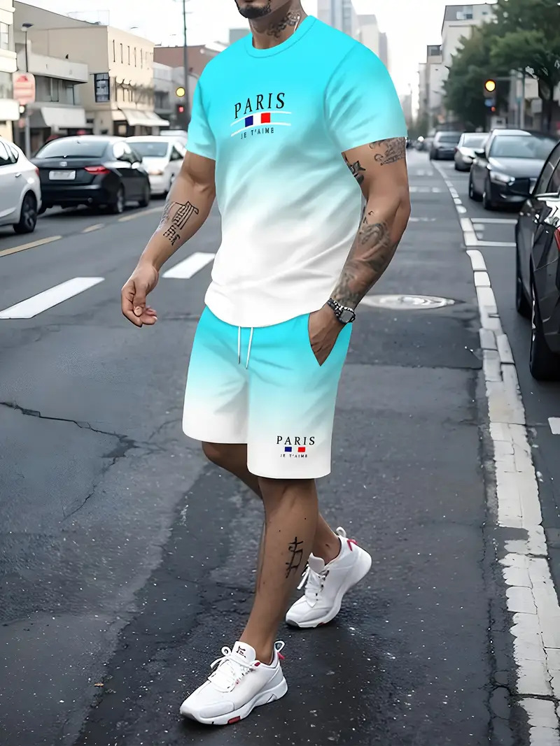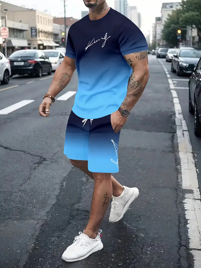 국경 간 대외 무역 여름 새로운 남자 반팔 세트 스포츠 세트 남자 반바지 반팔 티셔츠 캐주얼 세트