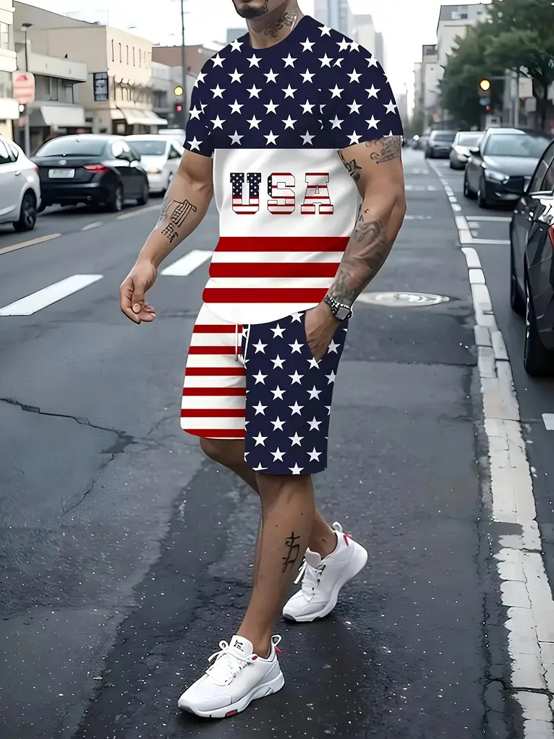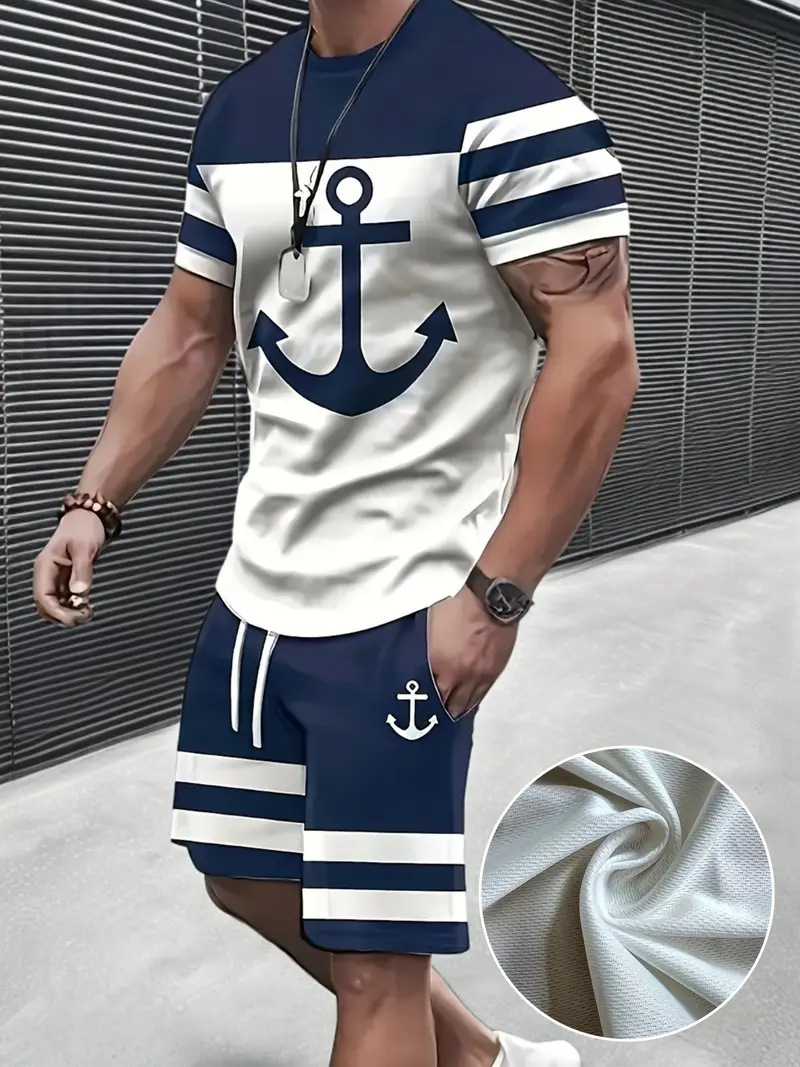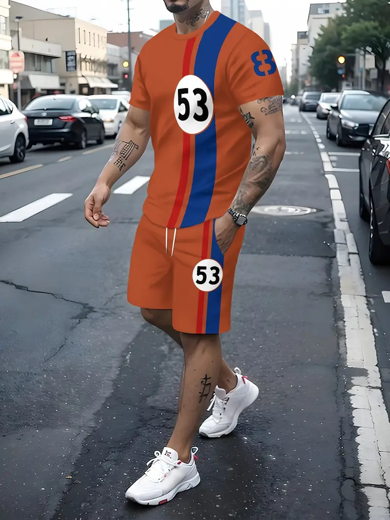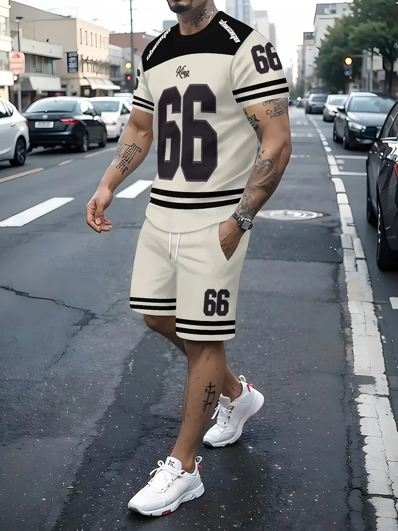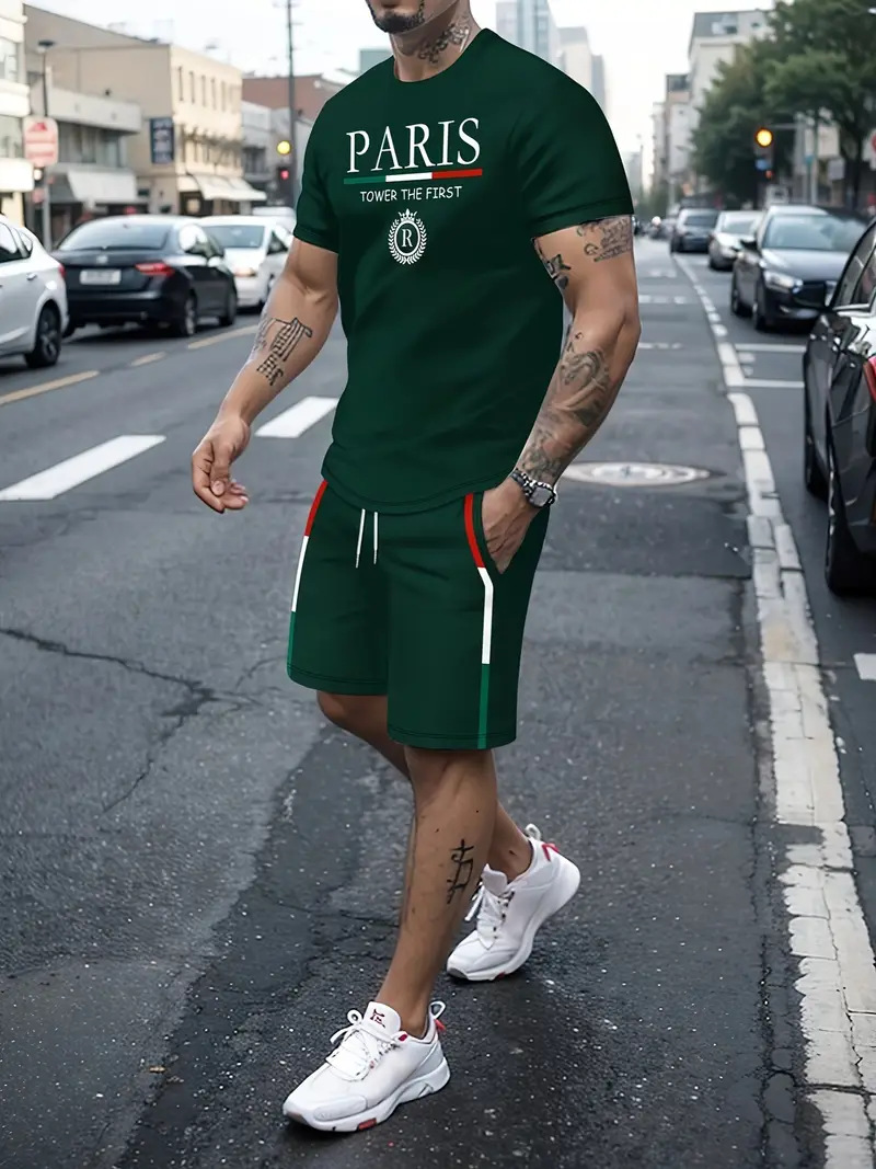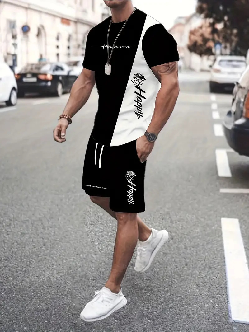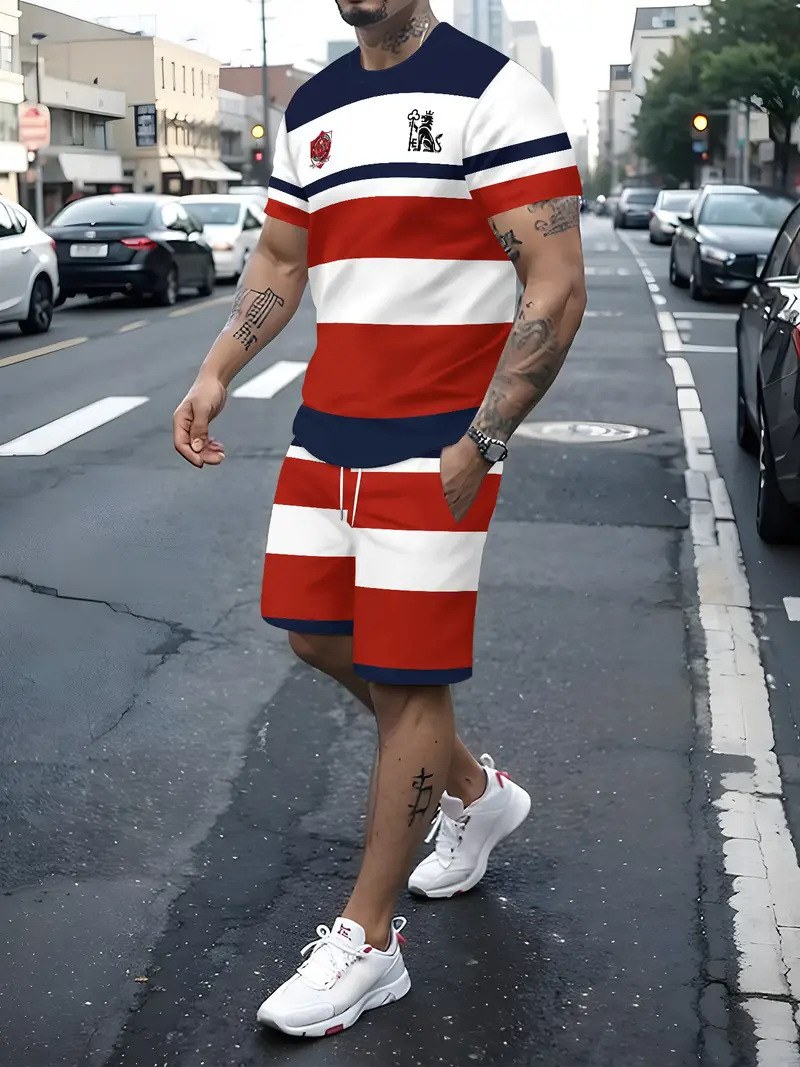 국경 간 대외 무역 여름 새로운 남자 반팔 세트 스포츠 세트 남자 반바지 반팔 티셔츠 캐주얼 세트